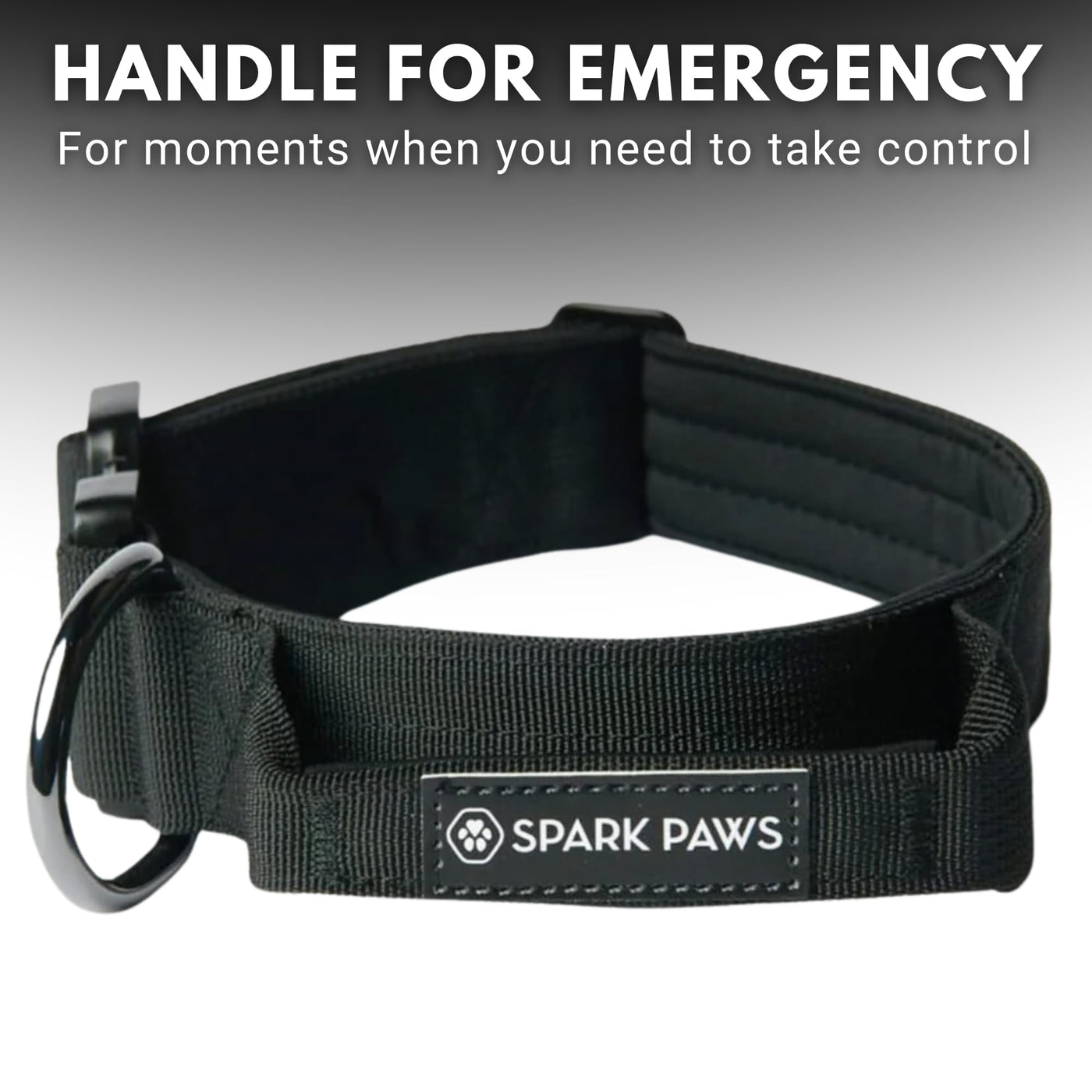 Spark Paws Tactical Dog Collar - Heavy Duty, Premium Quality, Thick And Durable For Large And Medium Dogs - Black - S