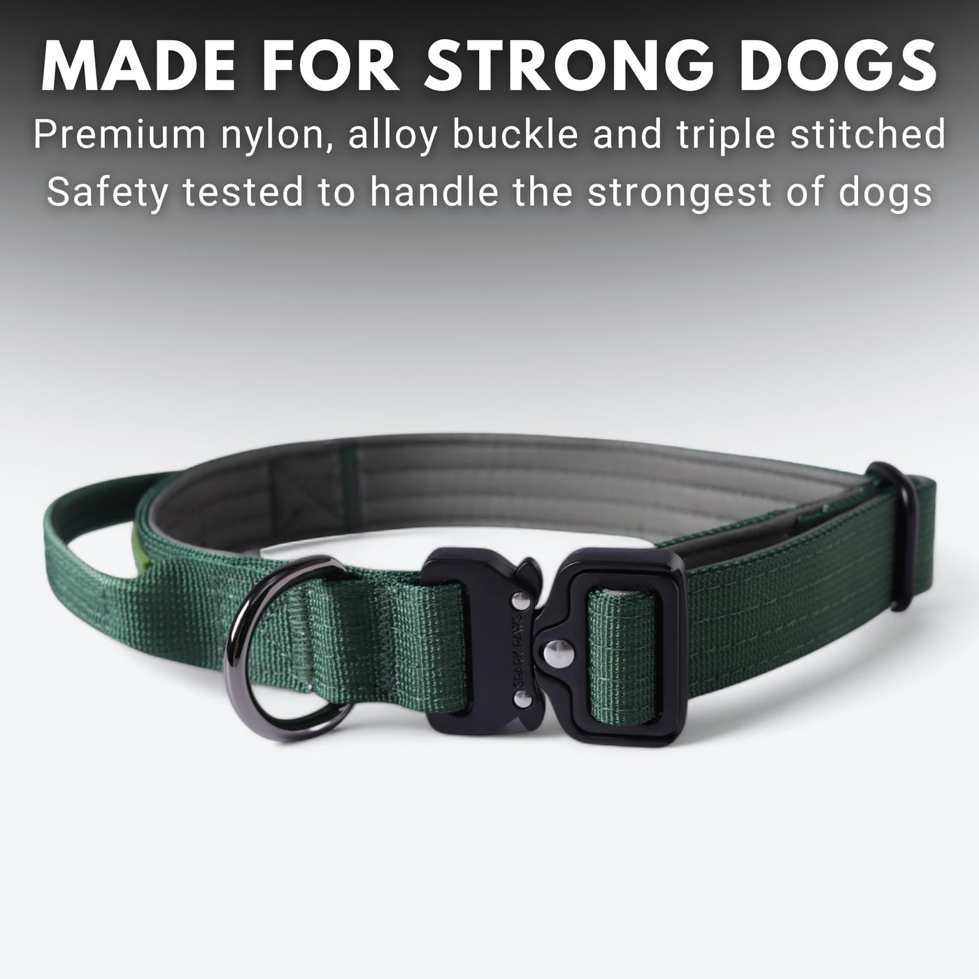 Spark Paws Tactical Dog Collar - Heavy Duty, Premium Quality, Thick And Durable For Large And Medium Dogs - Solid Green - Xs - 1