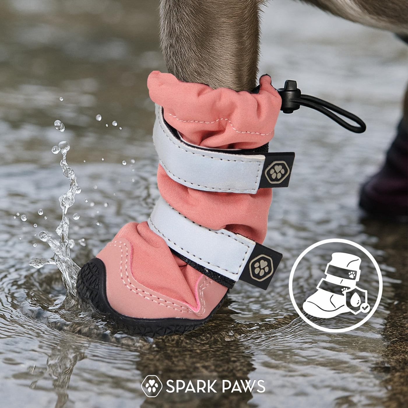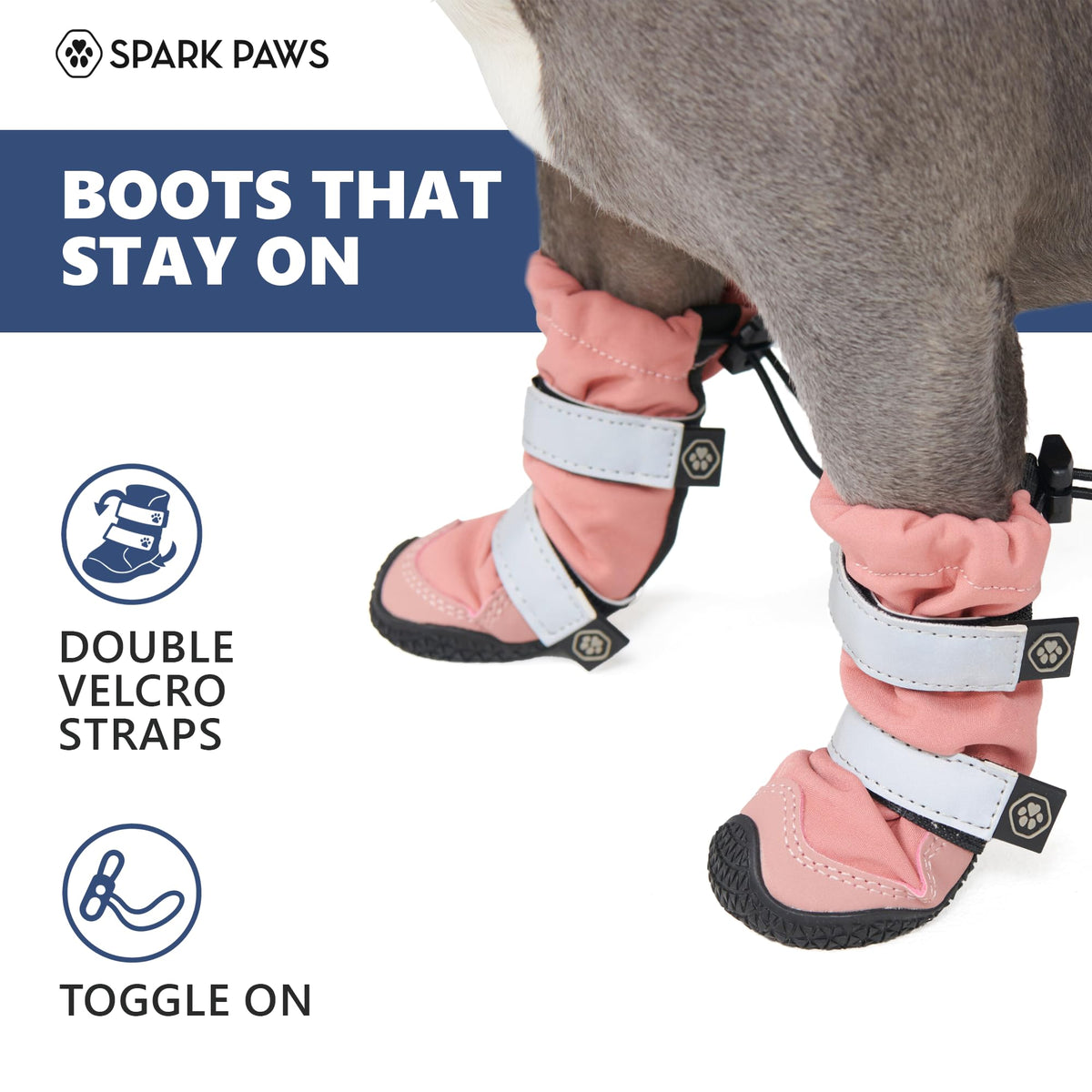 Spark Paws Water-Resistant Dog Boots For Medium Large Dogs, Anti-Slip Dog Shoe Booties Paw Protector For Rain Snow Hiking Reflective Straps 4Pcs - Pink, D