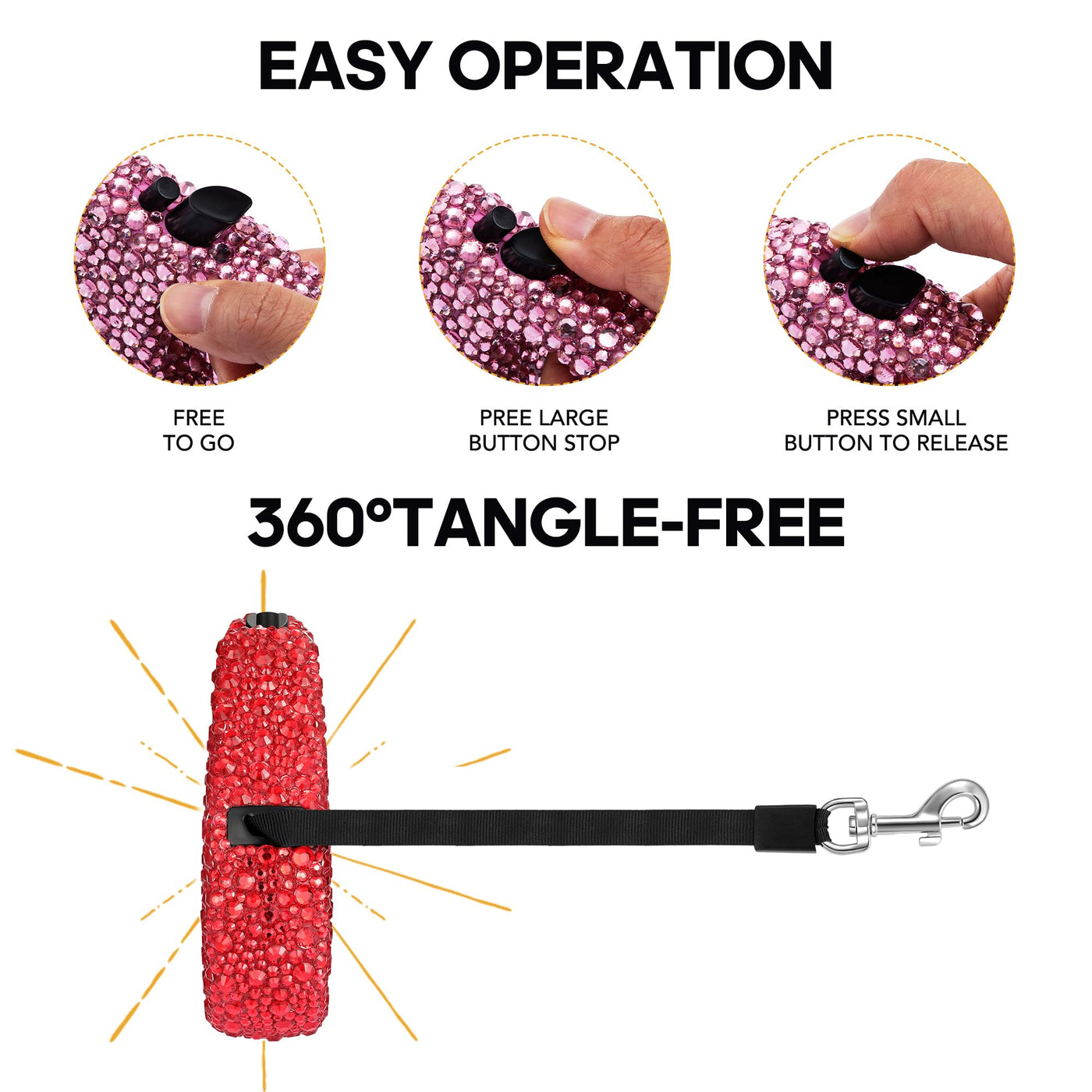 The Retractable Leash Perfect For Small To Medium-Sized Dogs And Cats,Length Is 16Ft (5M), Suitable For Small Medium Dogs Or Cats Or Small Animals Up To 77 Lbs. Stylish And Eye-Catching Design With Rhinestones,Added Durability And Charm For Slowvibes Pets Leash,Make Your Pets So Attractive While Out For Walk.Hand-Inlay Makes Rhinestones Sturdy And Uneasy To Fall-Off. One Hand Braking System Easily Roll-On And Roll-Off With Your Thumb,Quick Lock And Unlock. 360 Tangle-Free Design Ensures Hassle-Free Walks, Allowing Your Pet To Explore Without Getting Caught. The Dog Leash With Lightweight And Durable Construction, Suitable For Daily Walks, Training, And Outdoor Activities.