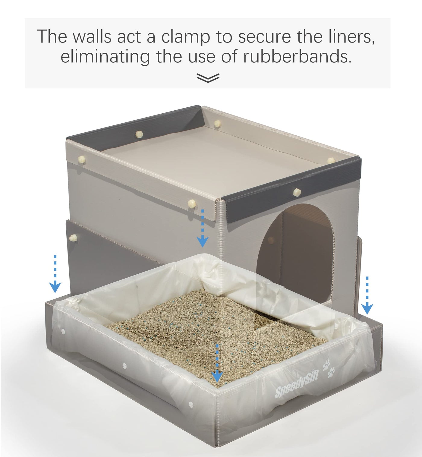 SpeedySift 17 Hooded Litter Box with 4-pack (56ct) Standard Sifting Liners 100% corrugated plastic boards Water-proof & durable Replacement 17 side-walls available for high-spraying cats
