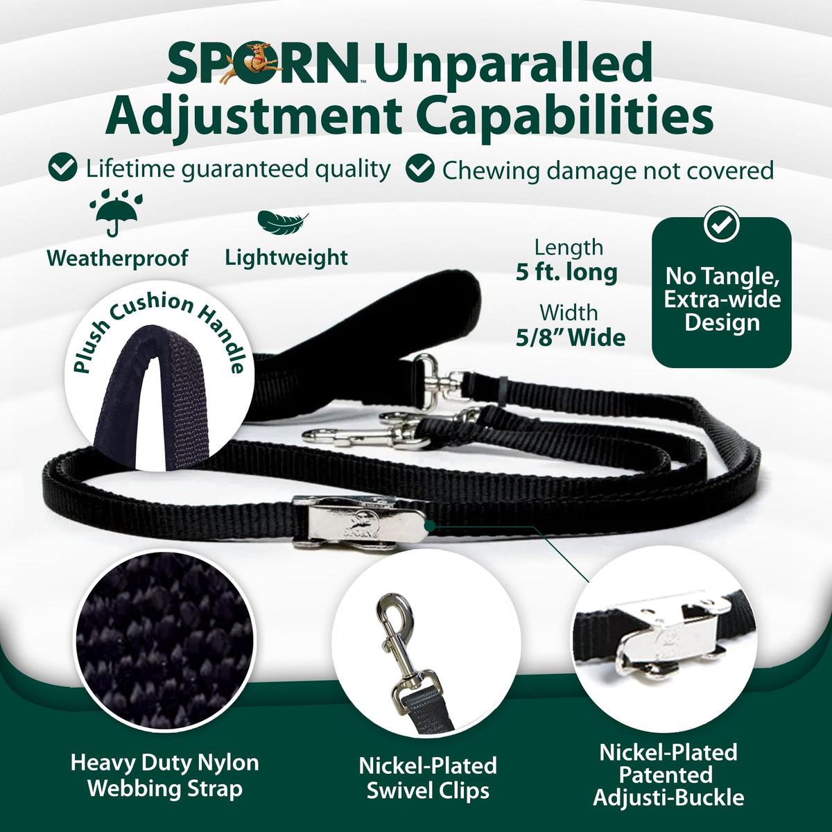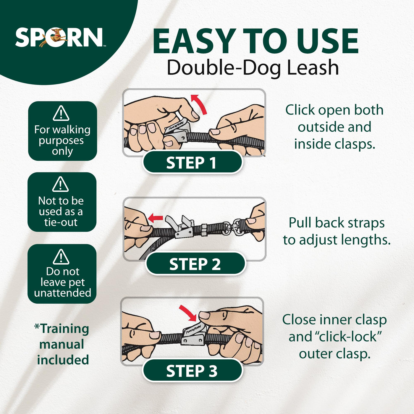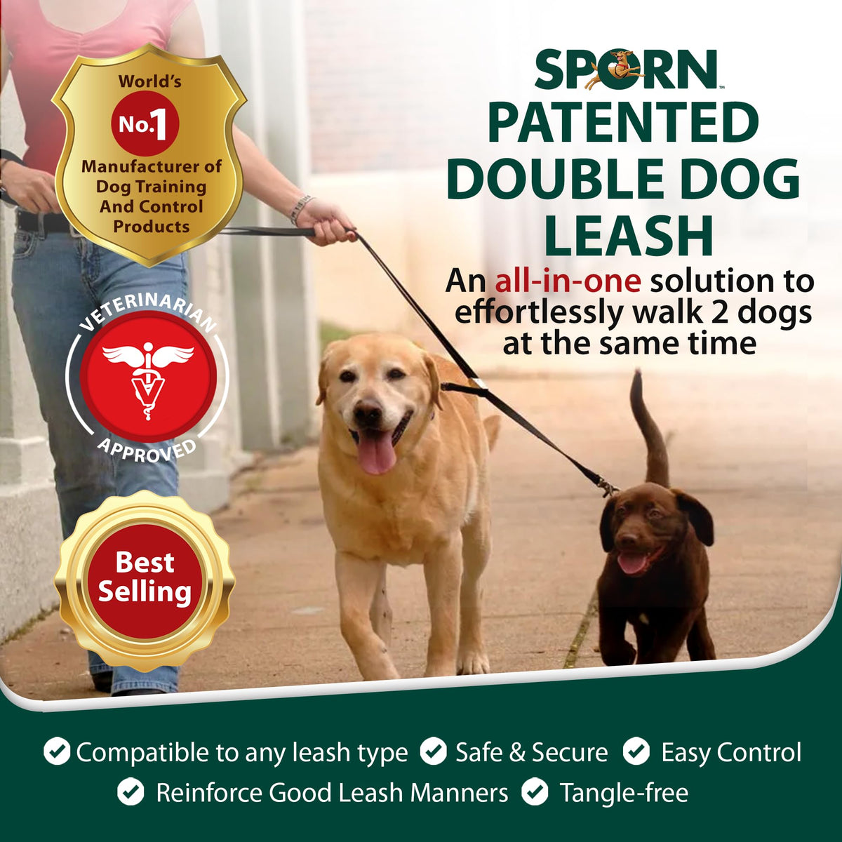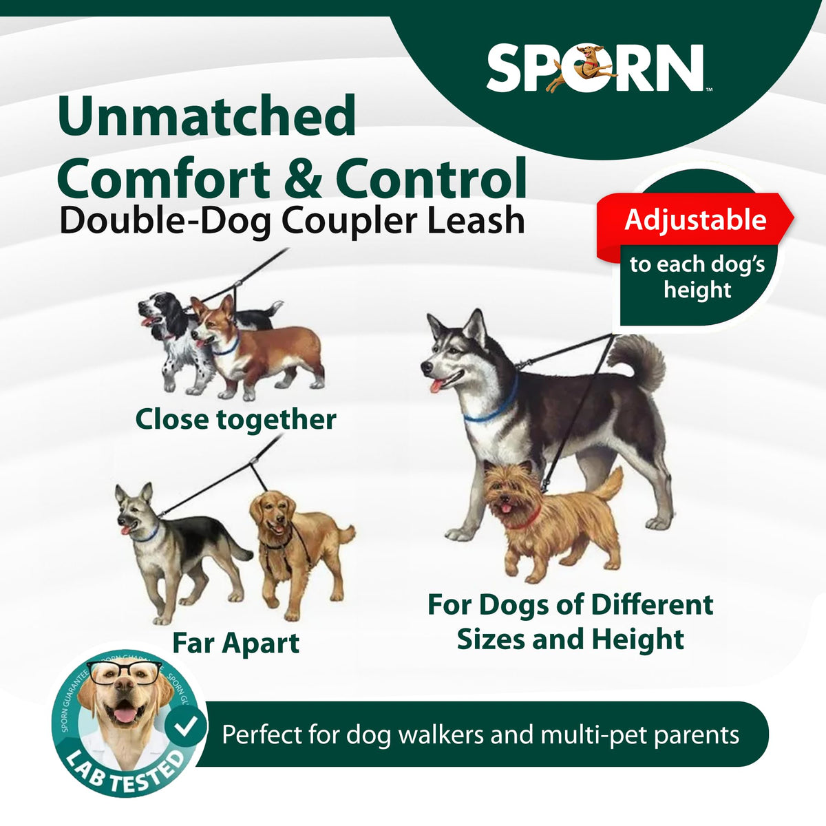 Sporn Double Dog Leash For Two Dogs, Black Dog Coupler With Strong Nylon Webbing & Cushion Handle For Medium Dogs Coupler Provid