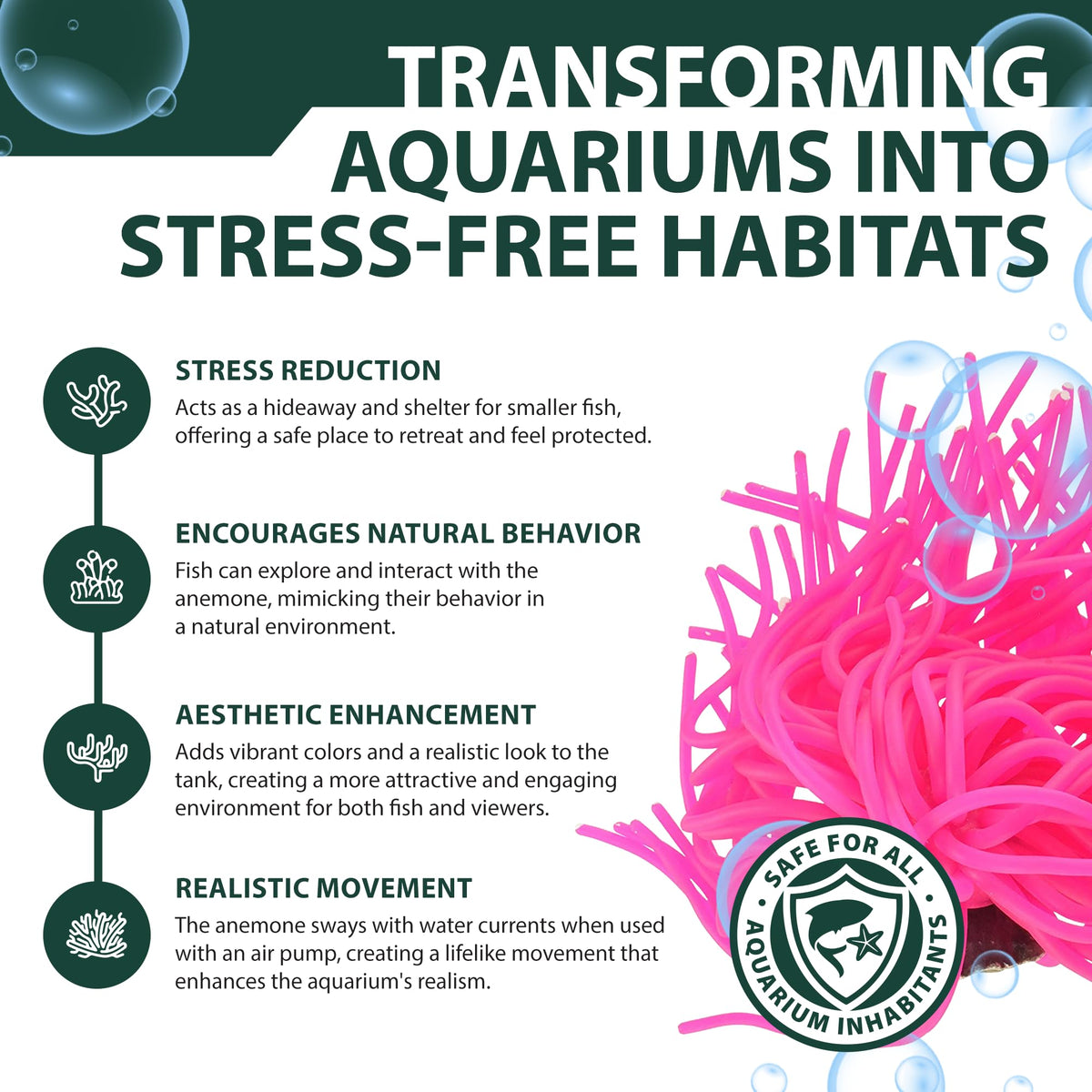 PROVIDES A STRESS FREE NATURAL HABITAT TO YOUR FISH: Our anemone fish tank accessories decorations enhances the ambiance with a clutter-free appearance creating a beautiful and realistic lifelike environment for your smaller fish to explore or hide.