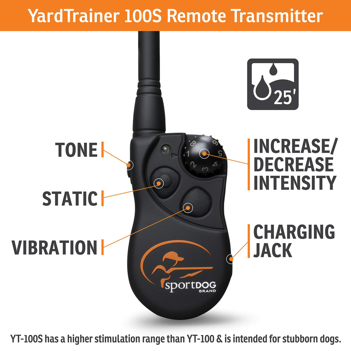 Sportdog Brand® Yardtrainer 100S Remote Trainer - Shock Collar For Stubborn Dogs - Train With Tone, Vibrate, Or Static