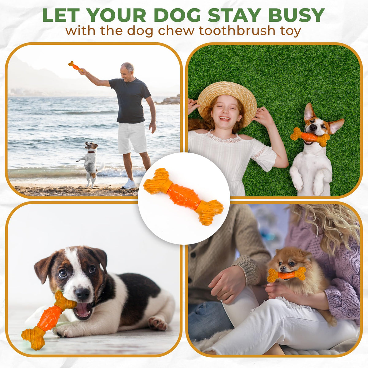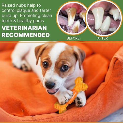 FUN SHAPE AND DUAL TEXTURES : Nubs help keep teeth and gums healthy. Dogs love to chew these and make for a good puppy teething toy- Durable ends and massaging rubber centers with ridges and nubs. Keep your dog occupied with daily chewing.