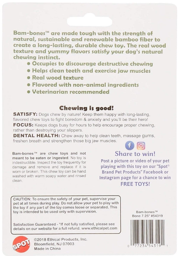 Bam-Bones Are The Newest In Durable Long-Lasting Chew Toys. Made With Bamboo Fibers That Are A Sustainable, Renewable, Natural Resource, Youll Feel Good Giving Your Dog This Chew Toy!Long Lasting And Tastes Great Too, Bam-Bones Will Satisfy Your Dogs Natural Instinct To Chew.Durable Long-Lasting Chew Toymade With Bamboo Fibers; A Sustainable, Renewable Natural Resourcesatisfies Your Dog'S Natural Instinct To Chewlong-Lasting And Tastes Great Too!
