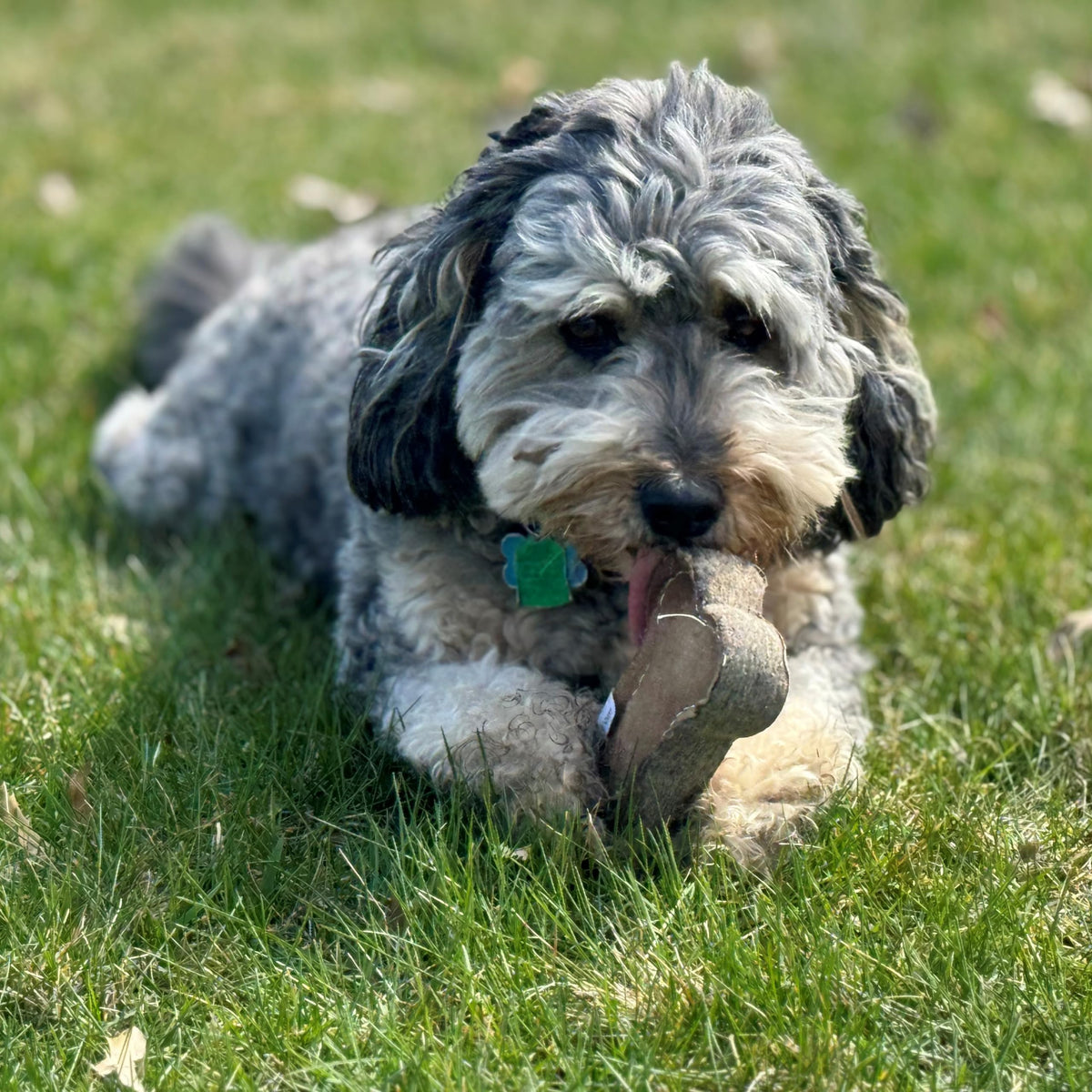 Dura-Fused Chunkies combine real leather with wool felt fabric in between for added thickness and strength. Stitching through all layers with heavy duty thread adds extra durability. Popular bone shape that dogs love!