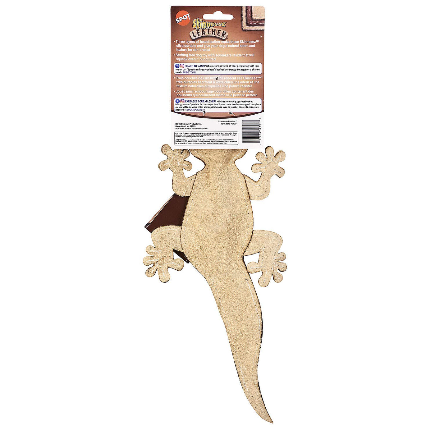 Spot Skinneeez Leather Lizard - Stuffing Free Dog Toy Made From Real Leather With 2 Squeakers, Mess Free Design For Strong Chewers, Tug Toy For Medium Dogs And Puppies - 15In