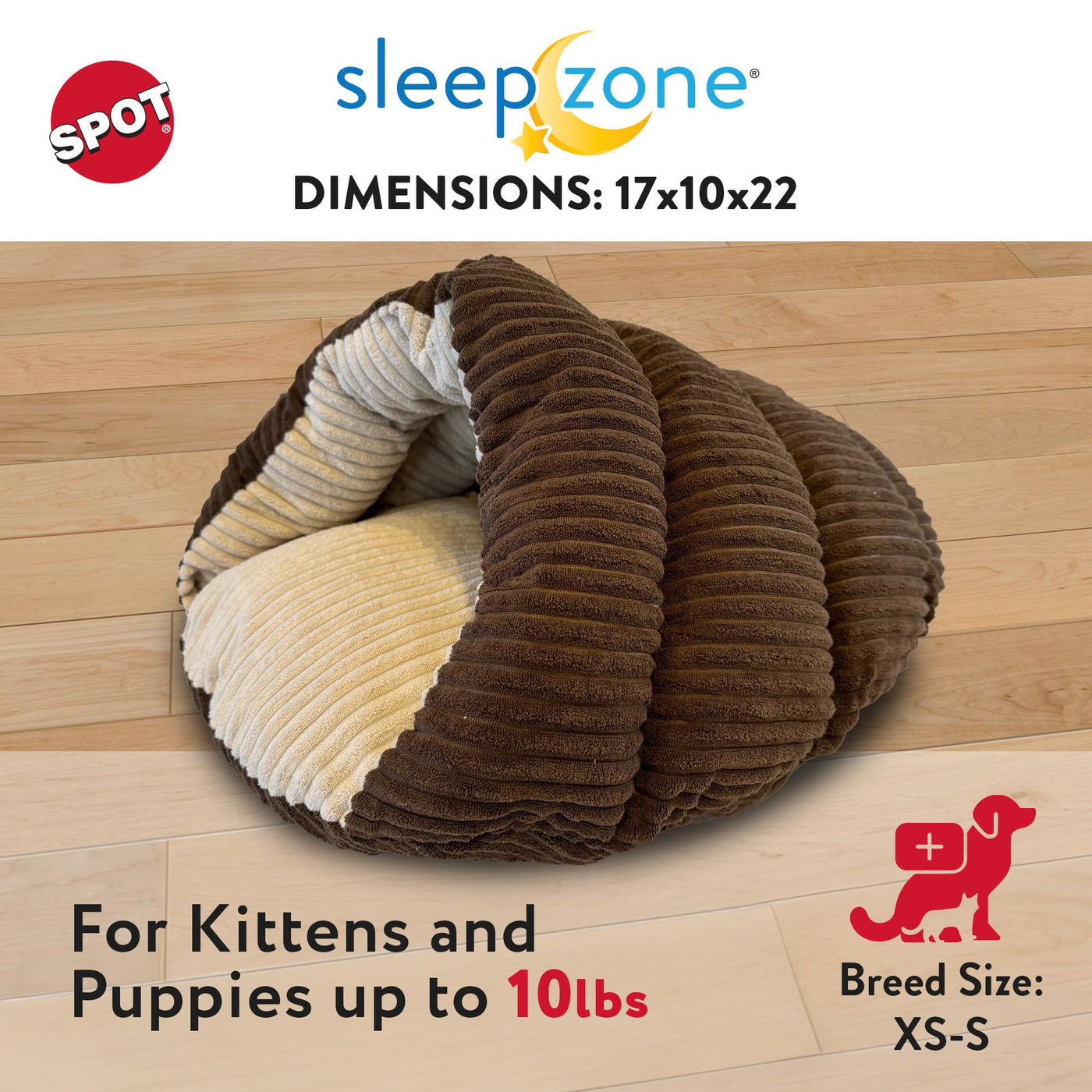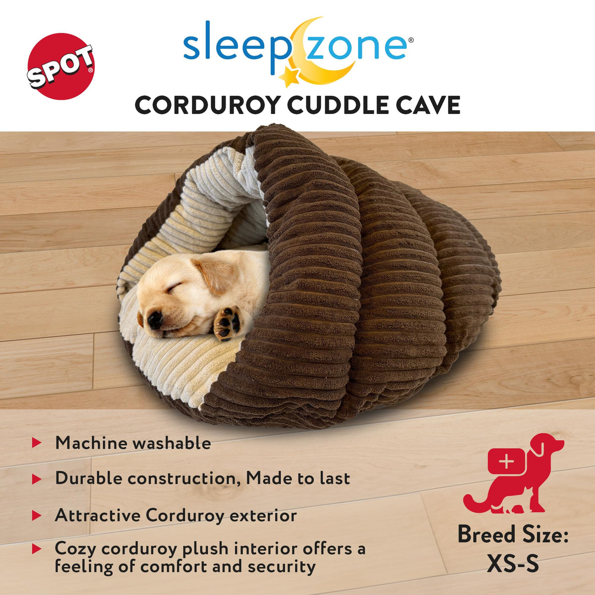 Spot Sleep Zone Cuddle Cave - Cat Cave Bed For Indoor Cats And Mini Dogs, Durable, Comfortable, Washable For Kittens And Puppies Under 10 Lbs And 12 Inches Long, Corduroy Brown