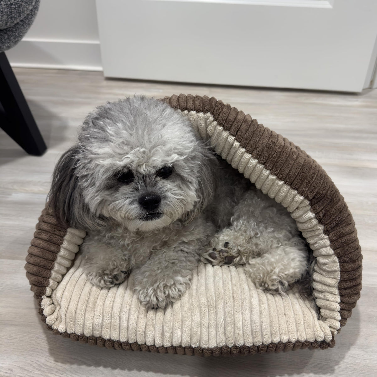 Q: Is the Cuddle Cave bed machine washable?A: Yes, the Cuddle Cave bed is machine washable. The filling is designed to maintain its shape and will not clump or shift when washed, making it easy to keep clean for your pets.