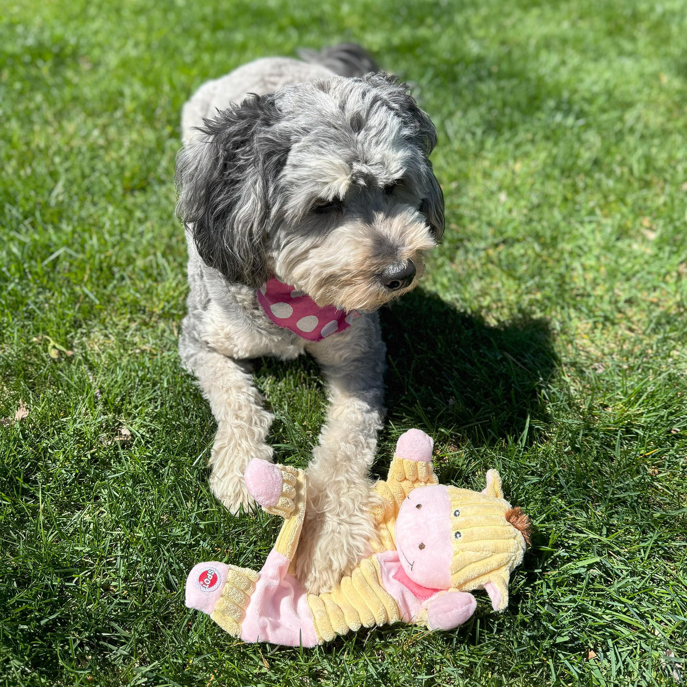 SPOT Soothers Crinkle Dog Toy provides a soft and cuddly companion for your canine friend. This aromatherapy puppy snuggle toy features a heart-shaped pouch with scented calming lavender fragrance beads to help calm and relax your puppy, and can also serves as a puppy sleeping aid. Soothers Crinkle Toys are perfect for pets suffering from stress and anxiety due to separation, travel, thunder, and loud noises. In addition to the unique design this toy has to offer, a crinkle paper and squeaker inside provide additional fun that will keep your fur friend coming back for more. This toy is available in the following animal designs: monkey, horse and cow, (will receive 1 of the 3 available animal characters). Dog separation anxiety toys are essential for your new pup. With a heritage dating back to 1952, our firm excels in conceptualizing and procuring pioneering pet products, bolstered by our dedicated offices across the world. This longstanding commitment situates us as leaders within the pet industry, facilitating the creation and delivery of innovative solutions for pet owners worldwide.