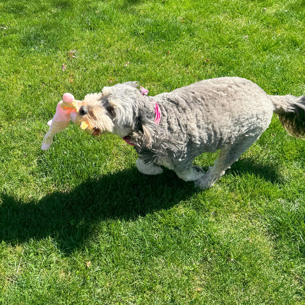 Q: Is the material of the SPOT Soothers toy safe for my dog?A: Yes, the SPOT Soothers Crinkle Paper Dog Toy is crafted from high-quality plastic materials, ensuring safety for your furry friend. The lavender-infused beads are safely contained in a heart-shaped pouch, making it a safe and enjoyable sensory toy for dogs of all sizes.