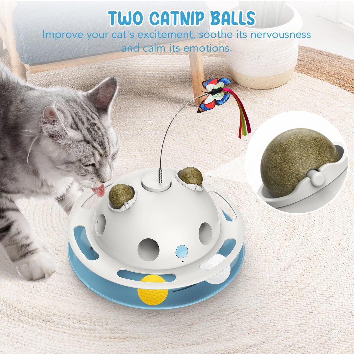 Spoven 4 In1 Cat Toys, Smart Automatic Interactive Kitten Toy With Shooting Feather, Butterfly, Catnip Balls, Usb Powered Cat To