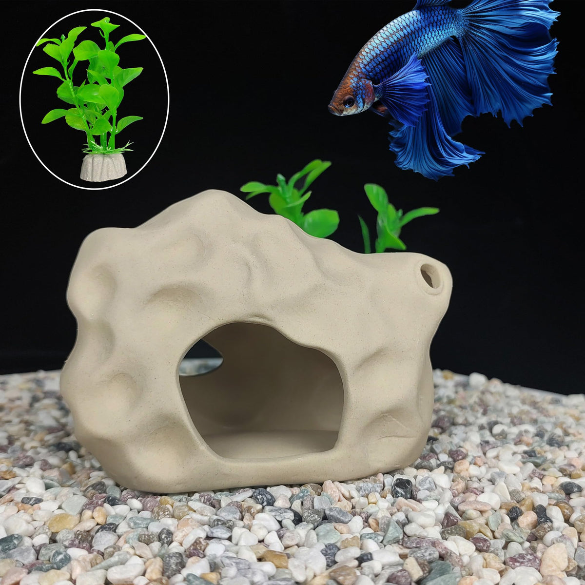 SpringSmart Aquarium Decor Rock Cave for Fish Shrimp Turtle Crab, Betta Fish Tank Decorations Ceramic Hiding Stone, Fish Bowl La