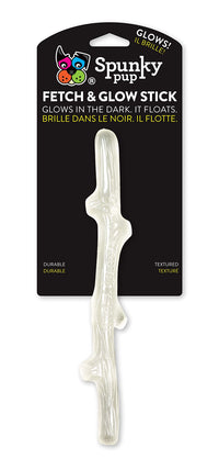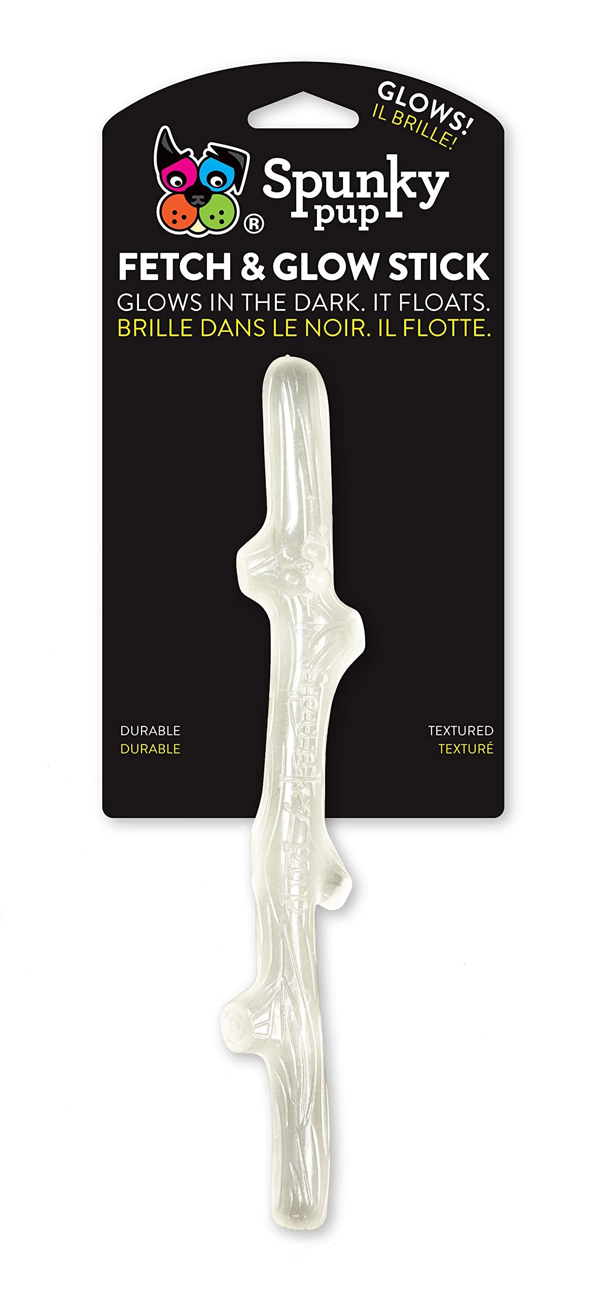 Q: Is the Spunky Pup Glow in the Dark Stick Dog Toy safe for my dog?A: Yes, the Spunky Pup Glow in the Dark Stick Dog Toy is made from non-toxic thermoplastic rubber, making it safe for chewing and play. It is designed to be safe for your dog's teeth and gums.