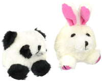 A tiny toy for your tiny puppy or small breed dog. These pint sized characters are the perfect size for your pet. Squeaker inside of toy. Size approx: 4in rabbit/3in panda.