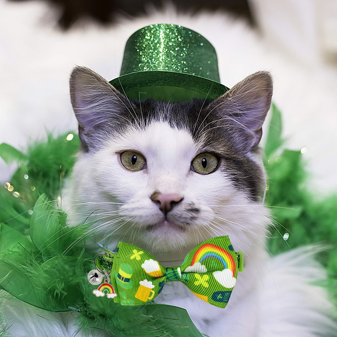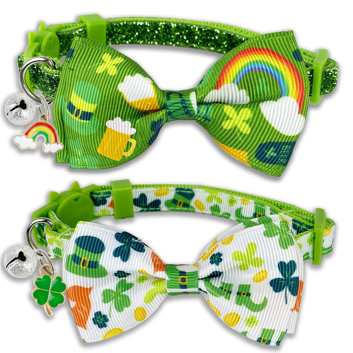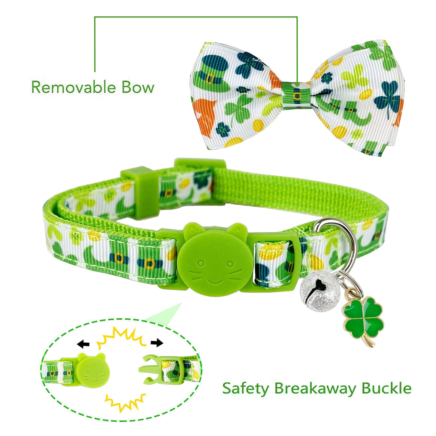 St. Patrick'S Cat Collar With Bow Tie And Bell, Kitty Kitten Breakaway Lucky Irish Shamrock Collar For Girls And Boys Male Femal
