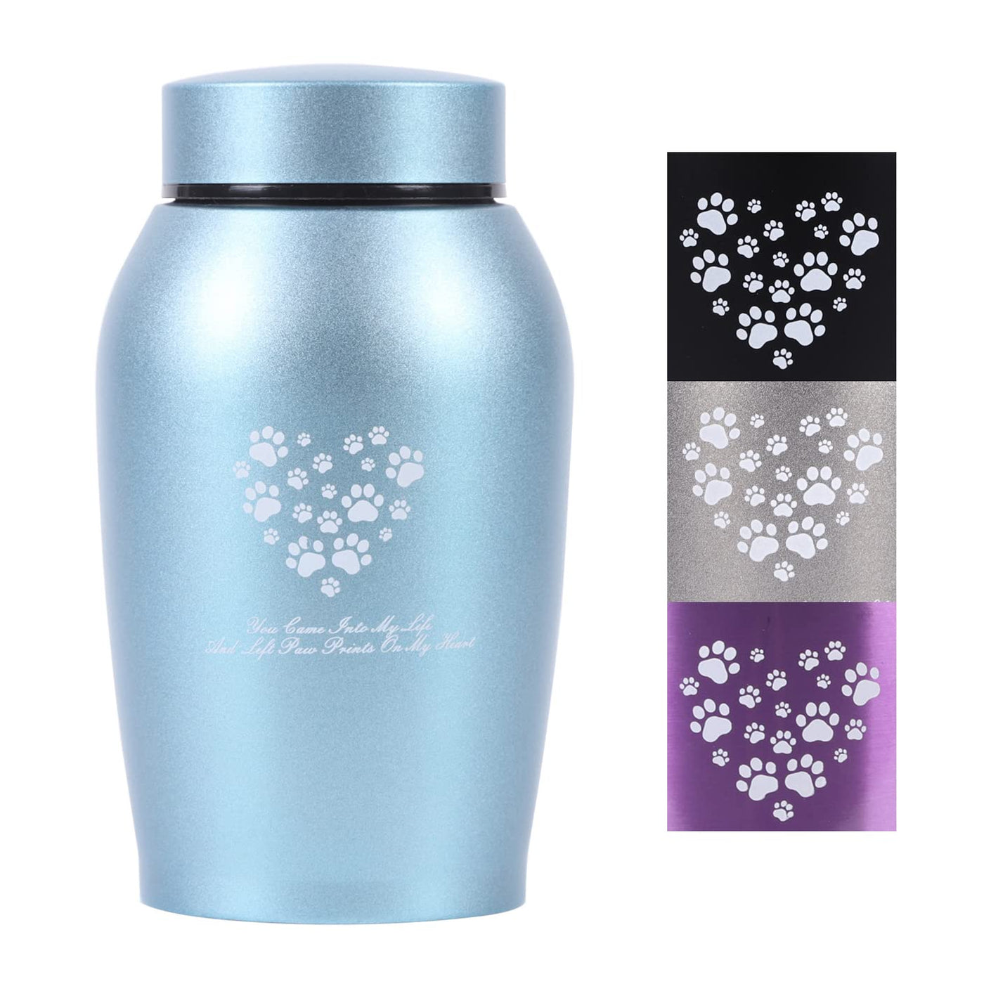 【Demensions and Capacity】Height: 8.3 inches. Length/Width/Diameter: 5.7 inches. Material: Stainless steel. Please Note: This pet urn can hold ashes of body weight under 140 lbs. | 【Beautiful and Durable】 This pet urn is made from high grade sturdy stainless steel.It is very solid, durable and was built to last to make sure that your loved ones are given with respect. | 【Screw-top lid】Screw-top lid provides a secure and reliable seal that keep your loved ones ashes stored dry in the dog urn. | 【Tribute】This urn for dog, cat ashes is a fitting memory of the life and love you shared.It also makes a touching gift for your loved pet who should also like a peaceful and beautiful place to rest. | 【Free return】We offer free return service,please do not hesitate to buy it.If you feel this is not the suitable pet urn for your loved one,just return for a full refund,at the same time, if you have other requirements, please contact the seller.