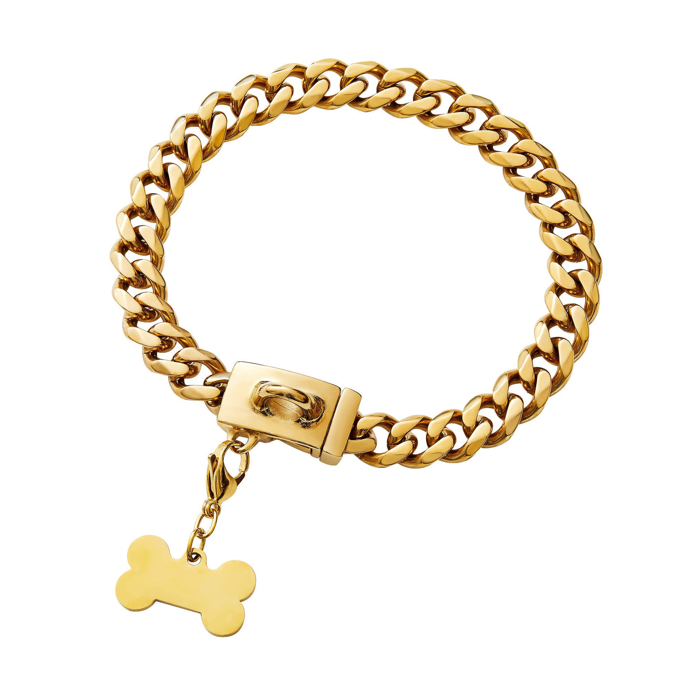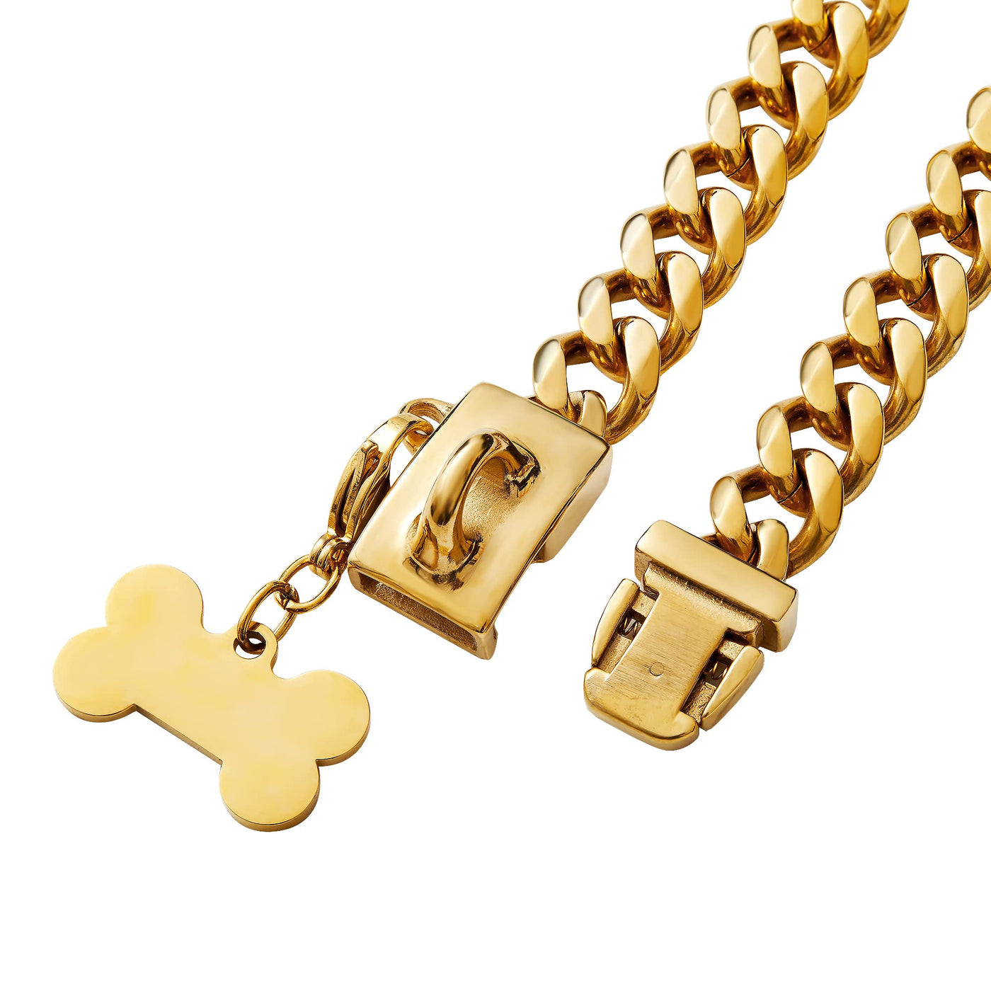 ?High-Quality Material?: Made of 304 stainless steel metal dog collar with buckle Hand Polished 18K Gold Plated.Gold Dog Necklace Collar Chew Proof Durable No Rust No Tarnished for years of use! It is very strong that can