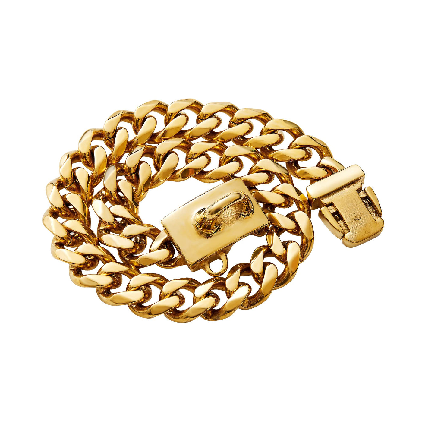 Stainless Steel Buckle Dog Collar, Cool Charm Pet Bulldog Jewelry Necklace, Waterproof Rose Gold Black Silver Anti-Chew Curb Cuban Dog Collar 16 Inch