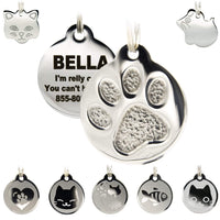 Stainless Steel Cat Id Tags - Engraved Personalized Cat Tags Includes Up To 4 Lines Of Text With Round Paw Shape