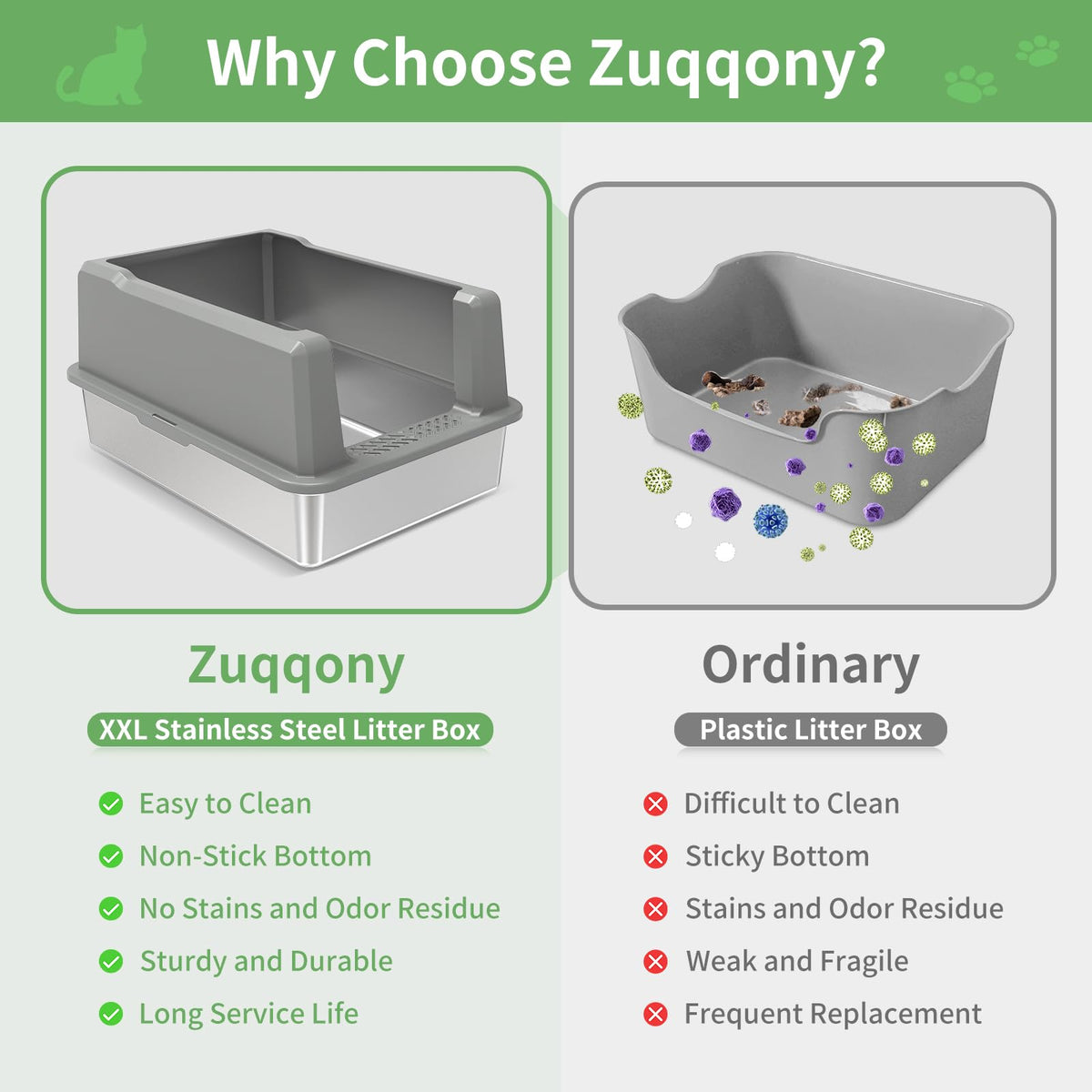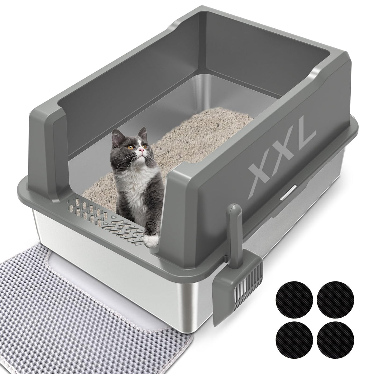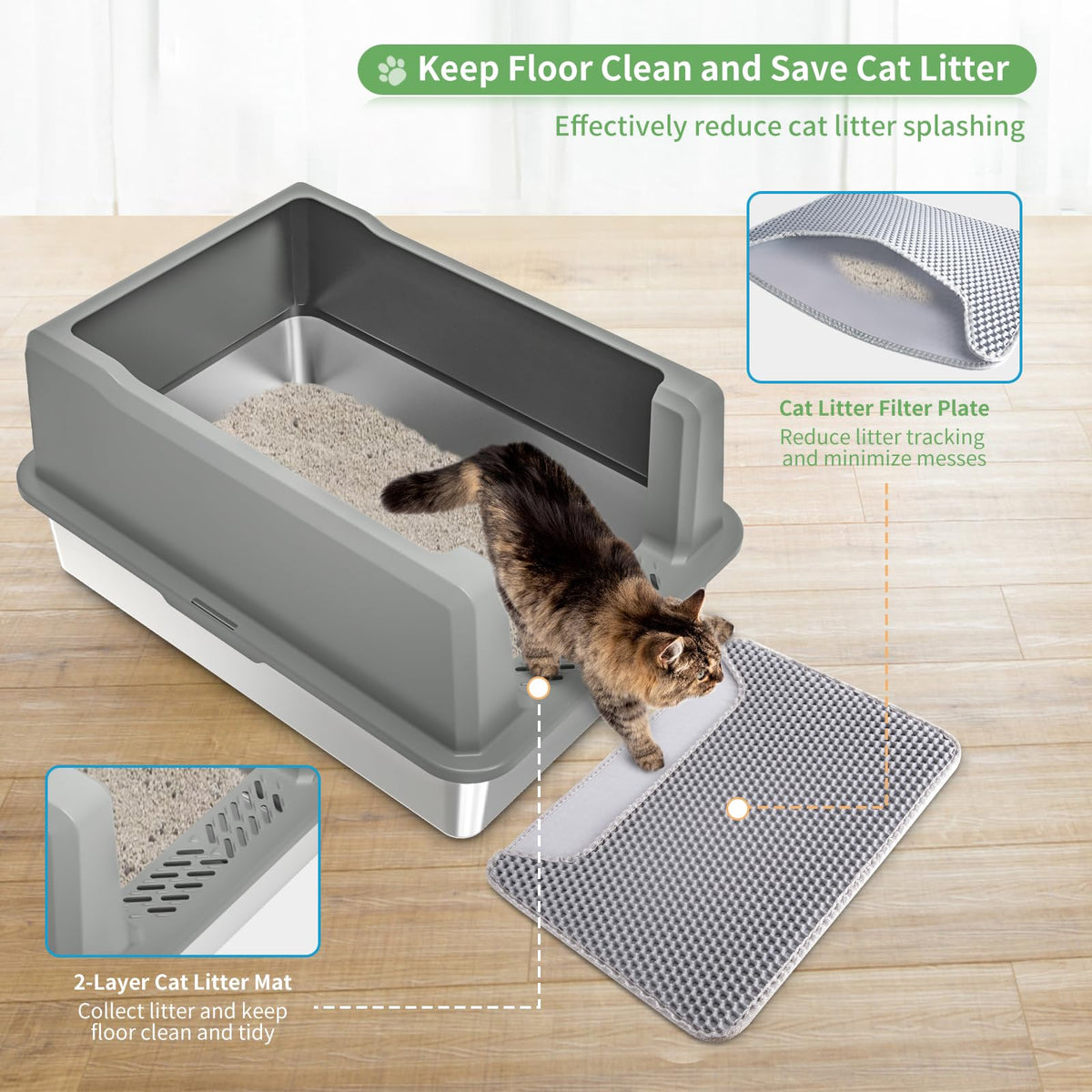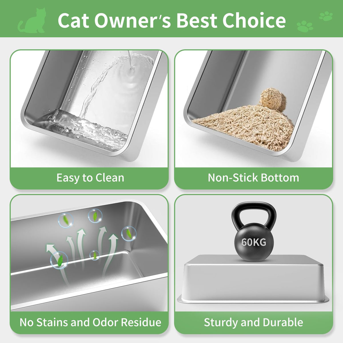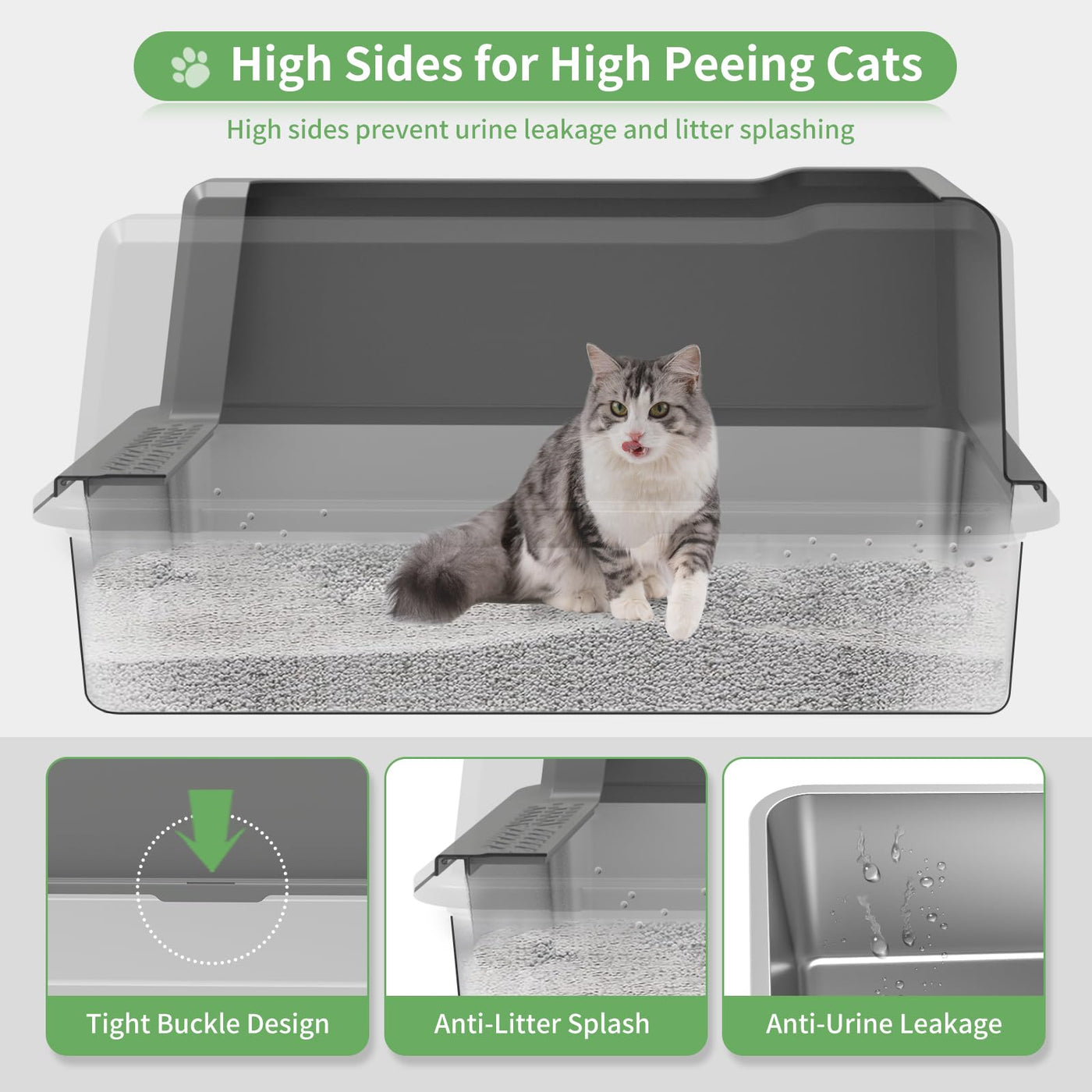 Stainless Steel Cat Litter Box With Lid, Metal Litter Box For Big Cats, Extra Large Litter Box With High Sides, Never Absorbs Odors, Easy Clean Metal Kitty Litter Box With Scoop