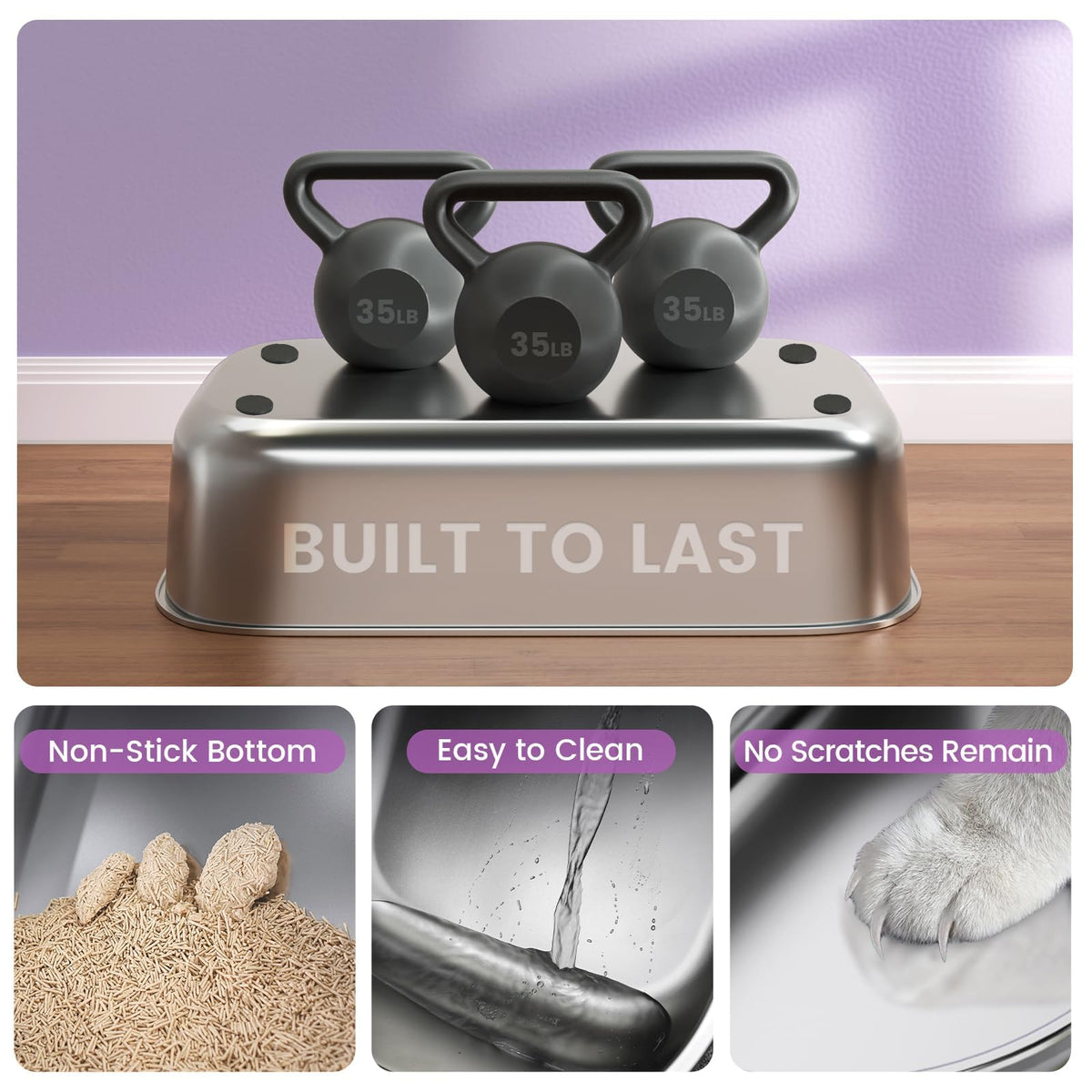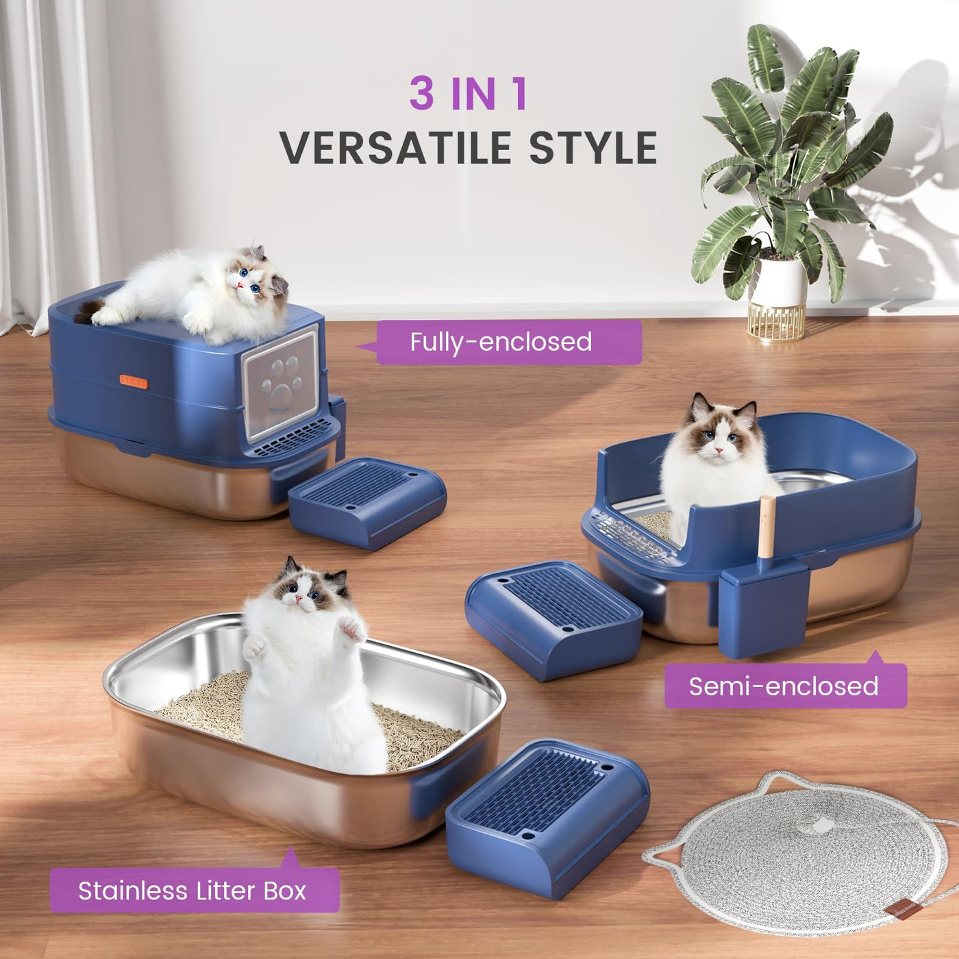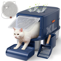 Introducing The Stainless Steel Cat Litter Box With Lid, A Premium Solution For Cat Owners Seeking A Durable, Hygienic, And Easy-To-Clean Covered Litter Box. This Metal Cat Litter Box Is Designed With Your Convenience In Mind, Providing A Cleaner, Fresher Environment For Both You And Your Feline Friends. The 3-In-1 Design Allows You To Switch Between Fully Enclosed, Semi-Enclosed, And Open-Top Setups, Offering Flexibility Based On Your Cat'S Needs. The Litter Box With Lid Makes Cleaning A Breeze, Thanks To Its Easy-To-Flip Top, Giving You Quick Access Without Hassle. Constructed From High-Quality Metal, This Cat Litter Box Is Resistant To Stains, Odors, And Rust. Its Superior Durability Ensures That It Outlasts Traditional Plastic Boxes, Providing Long-Term Savings. The Extra Large Cat Litter Box Is Also Easy To Wipe Down, Making Maintenance Simple. With Its Extra Large Cat Litter Box Size, This Product Is Perfect For Multiple Cats Or Larger Breeds. The Spacious Interior Allows Your Cats To Move Comfortably, And The Covered Litter Box Helps Contain Odors And Litter, Keeping Your Home Cleaner. For Added Value, This Set Includes A Bonus Cat Scratch Pad And An Anti-Tracking Mat That Prevents Litter From Being Spread Throughout Your Home. The Fully Enclosed Design Controls Odors And Contains Messes, Giving You Peace Of Mind.