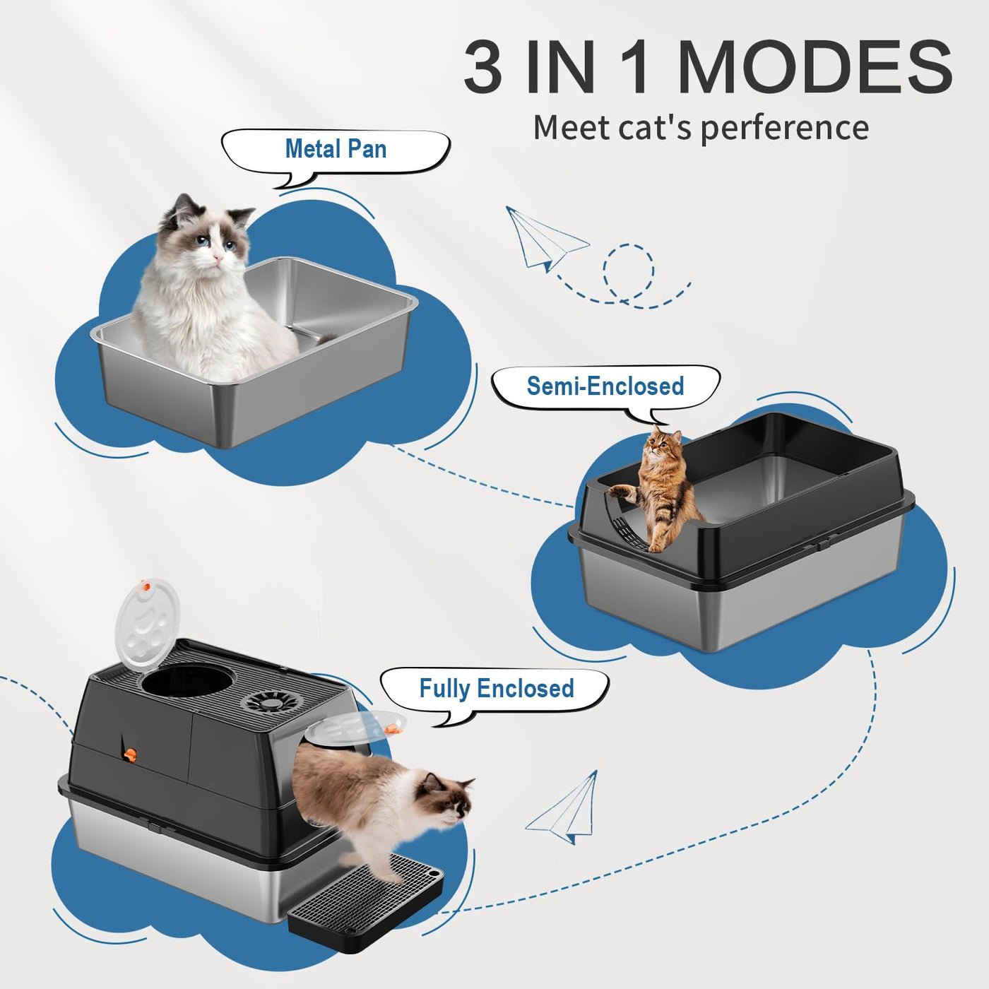 Stainless Steel Cat Litter Box With Lid, Xl Large Extral Enclosed Metal Litter Box With Litter Scoop&Double Layer Litter Mat,Ant