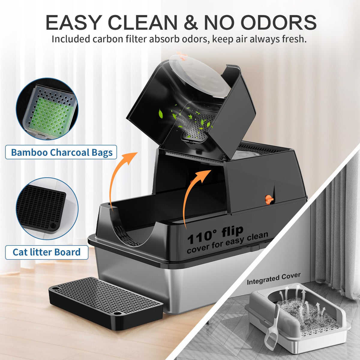 Ceyodo Cat Litter Box Is Perfect For Large Cats And Any Kind Of Cats, And We Provide 30-Day Unconditional Return Policy And 1-Year Warranty. If You Encounter Any Problems, You Can Always Contact Us For Help, We Will Respond Within 24 Hours; Come And Choose Our Stainless Steel Cat Litter Box!