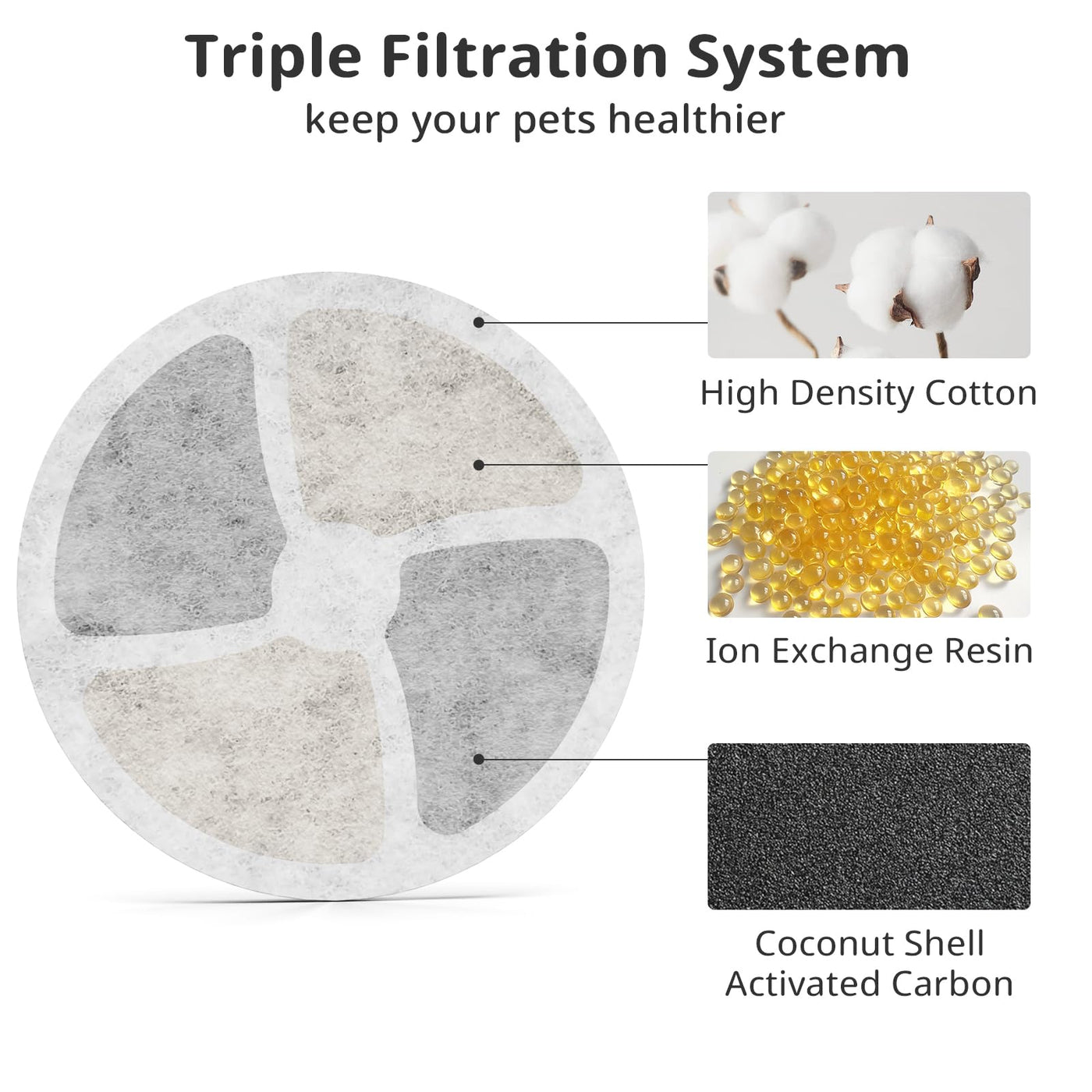 Stainless Steel Cat Water Fountain Filters, 5 Pack Replacement Filters Fit For Round 2L/67Oz Automatic Pet Fountain, Filter With