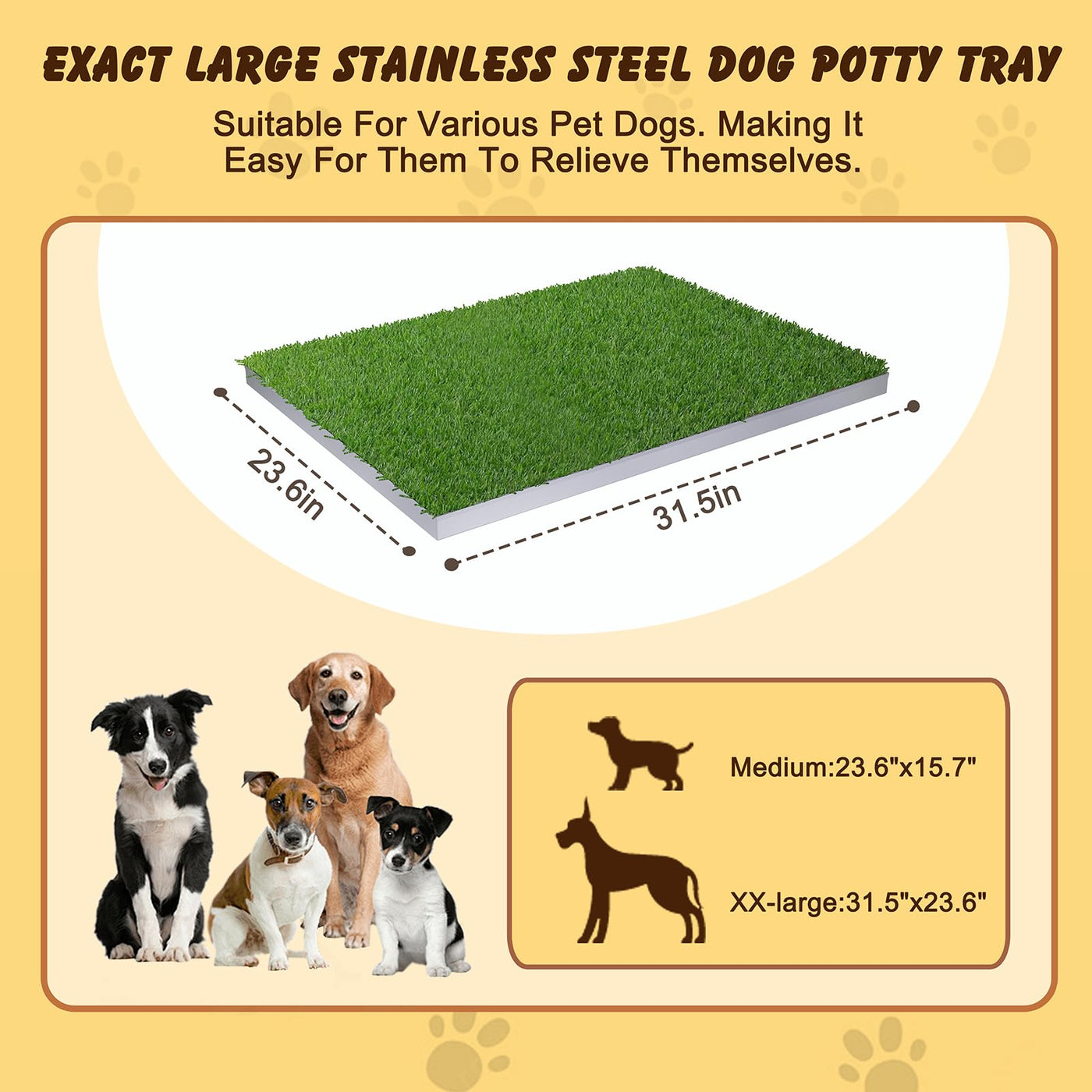 Stainless Steel Dog Grass Pad With Tray, Odor-Resistand & Easy To Clean Indoor/Outdoor Puppy Potty System,Durable Alternative To