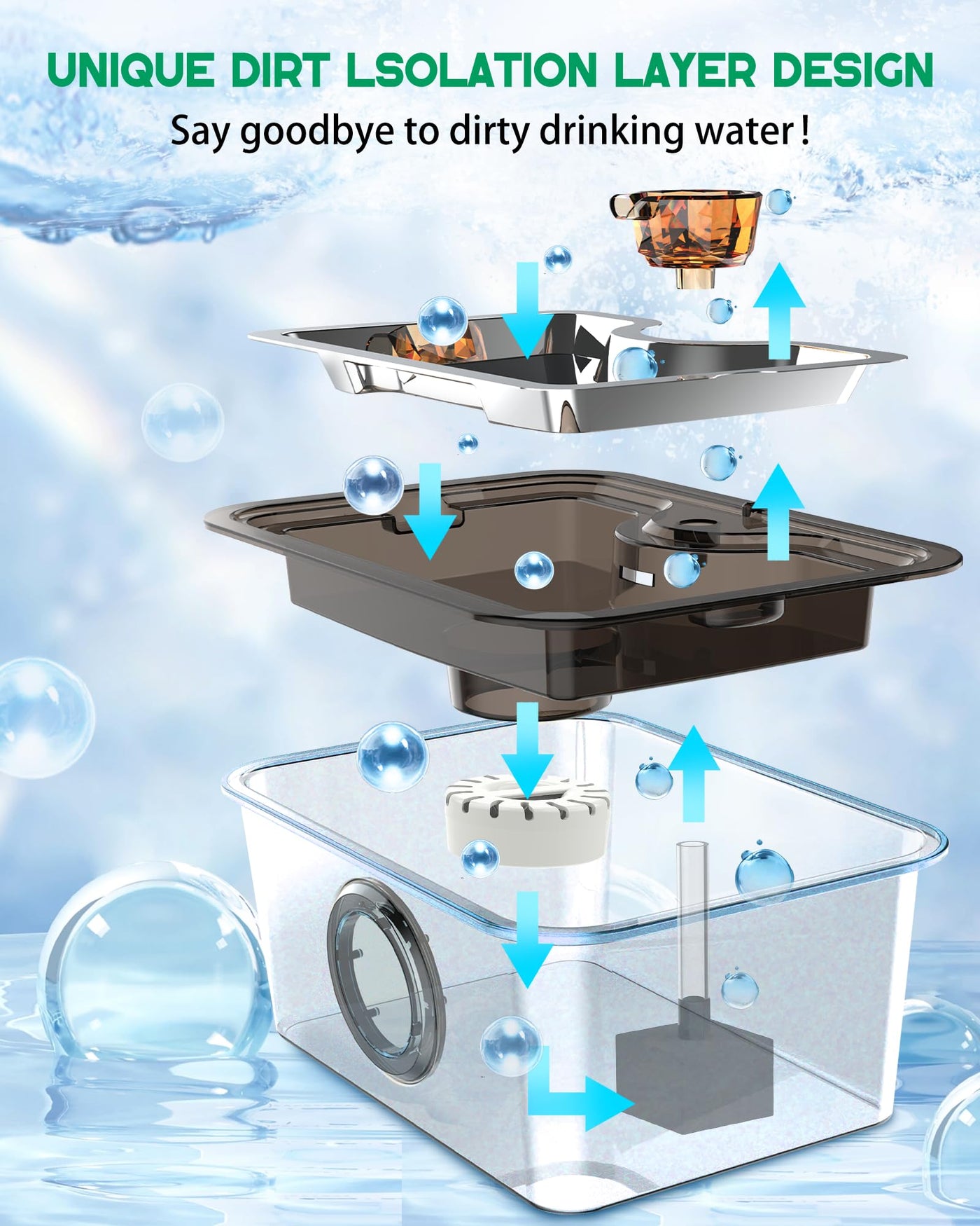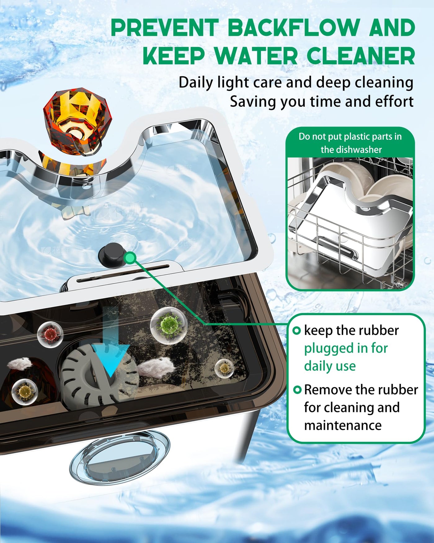 Keep Your Pets Hydrated With The 3 Gallon Stainless Steel Large Pet Water Fountain-Designed For Cats And Dogs Who Prefer Fresh, Flowing Water. While The Ultra-Quiet Pump Ensures A Peaceful Environment. And Enjoy The Convenience Of A Large 3-Gallon Tank That Reduces Refills. Easy To Clean And Bpa-Free! Can Also Be Used As Multiple Cats Water Fountain~