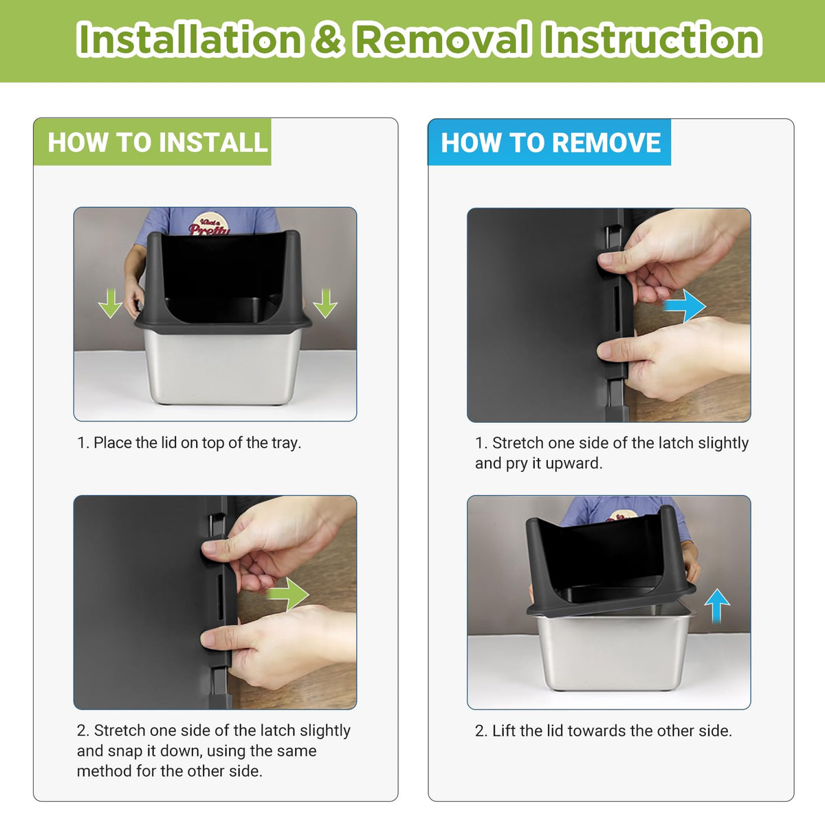 Stainless Steel Litter Box, Large Litter Box With Lid, Splash Proof, Or Rusts, Black (23.5'' L X 15.5'' W X 14'' H)