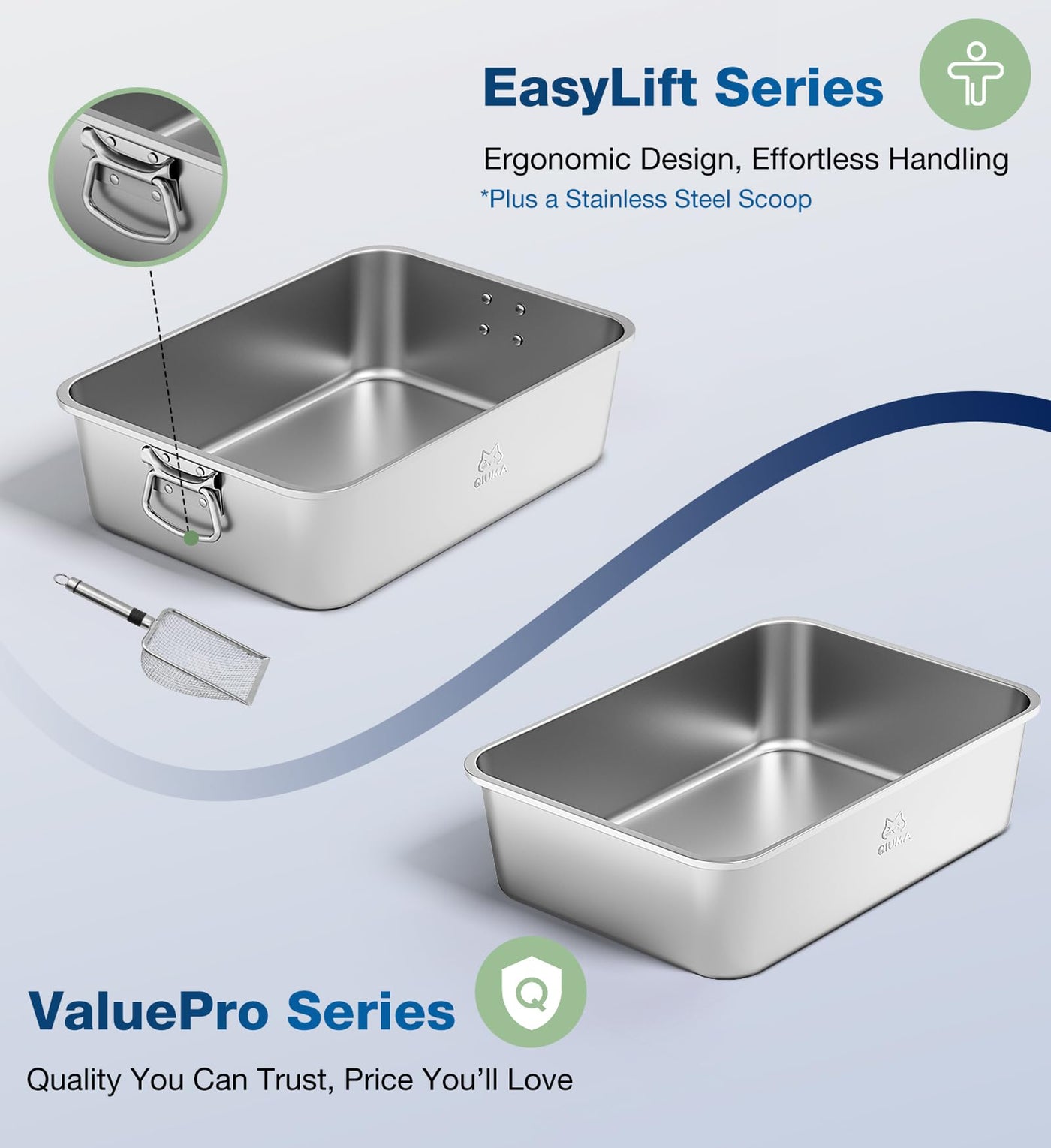 Stainless Steel Litter Box With Handle,Metal Cat Litter Box With High Sided For Big And Small Cats, Kitty Litter Boxes, Non-Stic