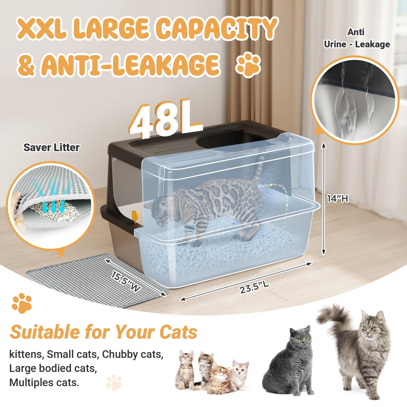 Stainless Steel Litter Box With Lid, Xl Metal Cat Litter Box For Indoor Cats, Enclosure Cat Litter Pan For Large Cats, Non-Sticky Large Kitty Litter Box, Anti-Leakage, 23.5'' X 15.6'' X 14''