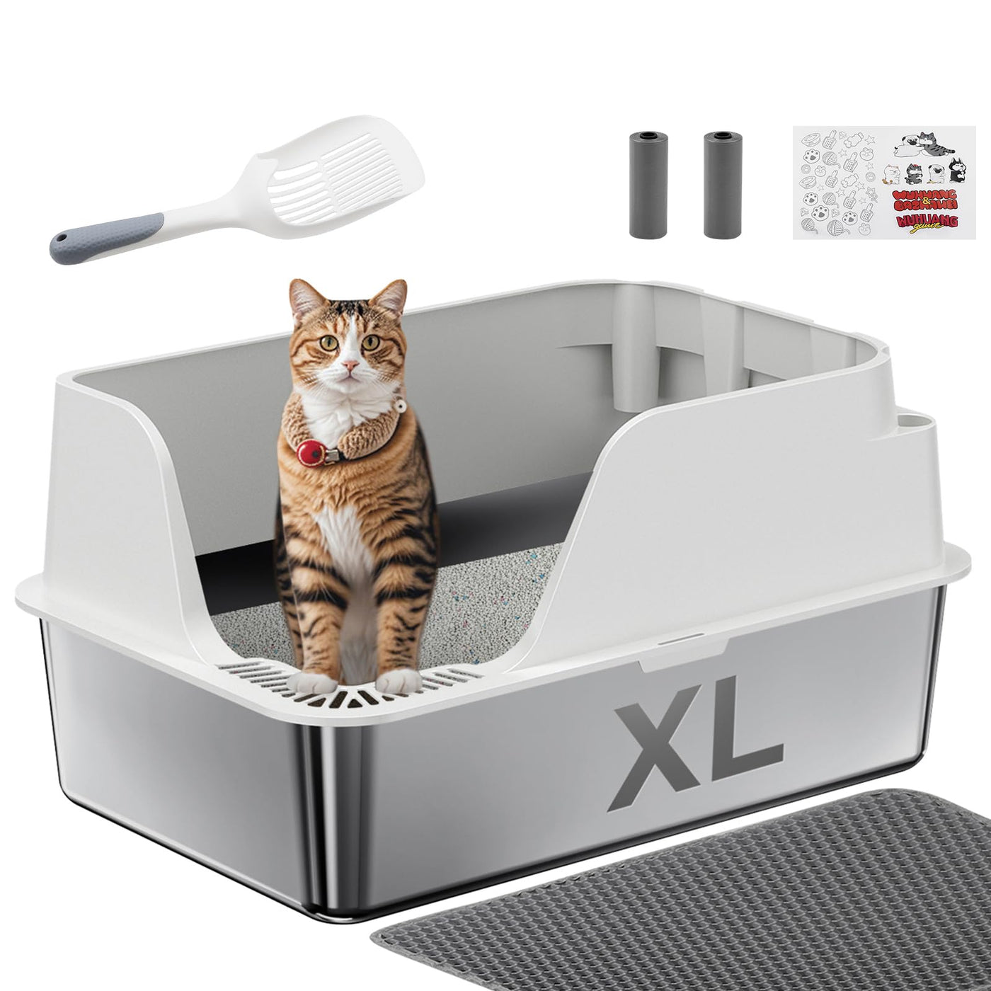 Stainless Steel Litter Box With Lid, Xl Extra Large Metal Litter Box For Big Cats, With High Sided, Anti Leakage,Odor-Free & Eas
