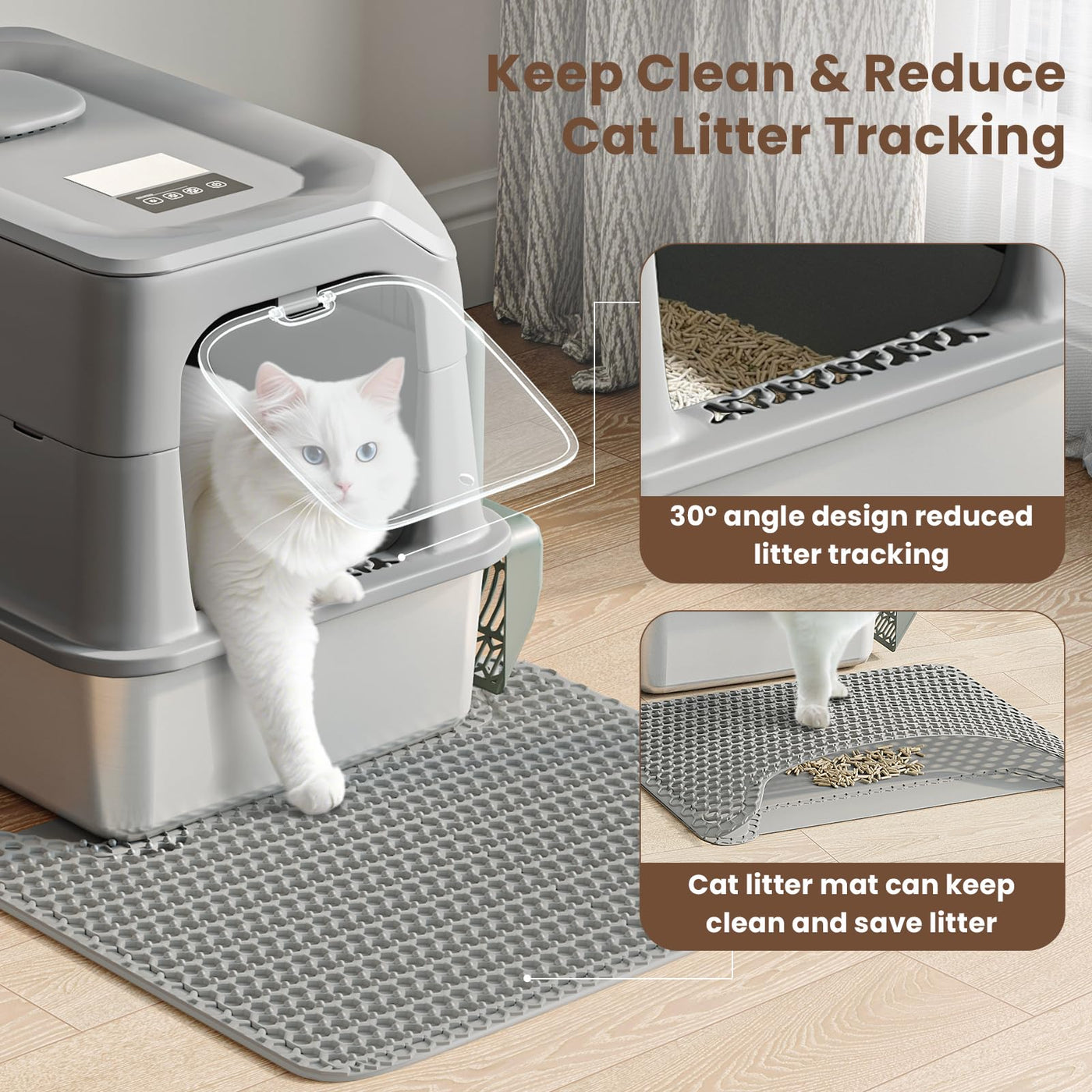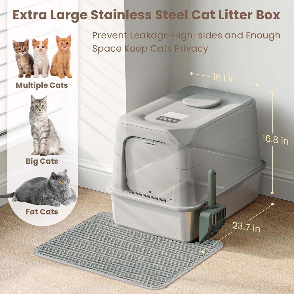 Extra Large Stainless Steel Cat Litter Box: The Enclosed Stainless Steel Cat Tray Is Perfect For Large Or Big Cats, Measuring 23.7L X 16.1W X 16.8H Inches. It Provides Ample Space And Can Hold Up To 20 Liters Of Cat Litter, Sufficient For 1-3 Adult Cats.