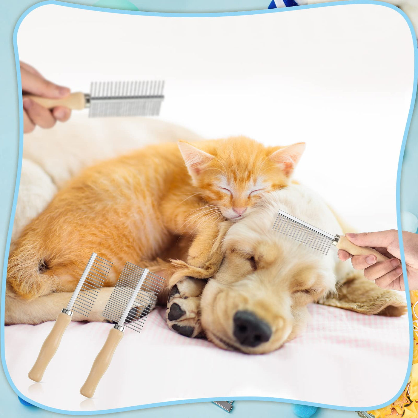 Stainless Steel Pet Grooming Comb Set - 2 Pcs Double-Sided Metal Combs With Wooden Handles For Dogs And Cats, Long And Short Fur, Flea Removal Brush Tool