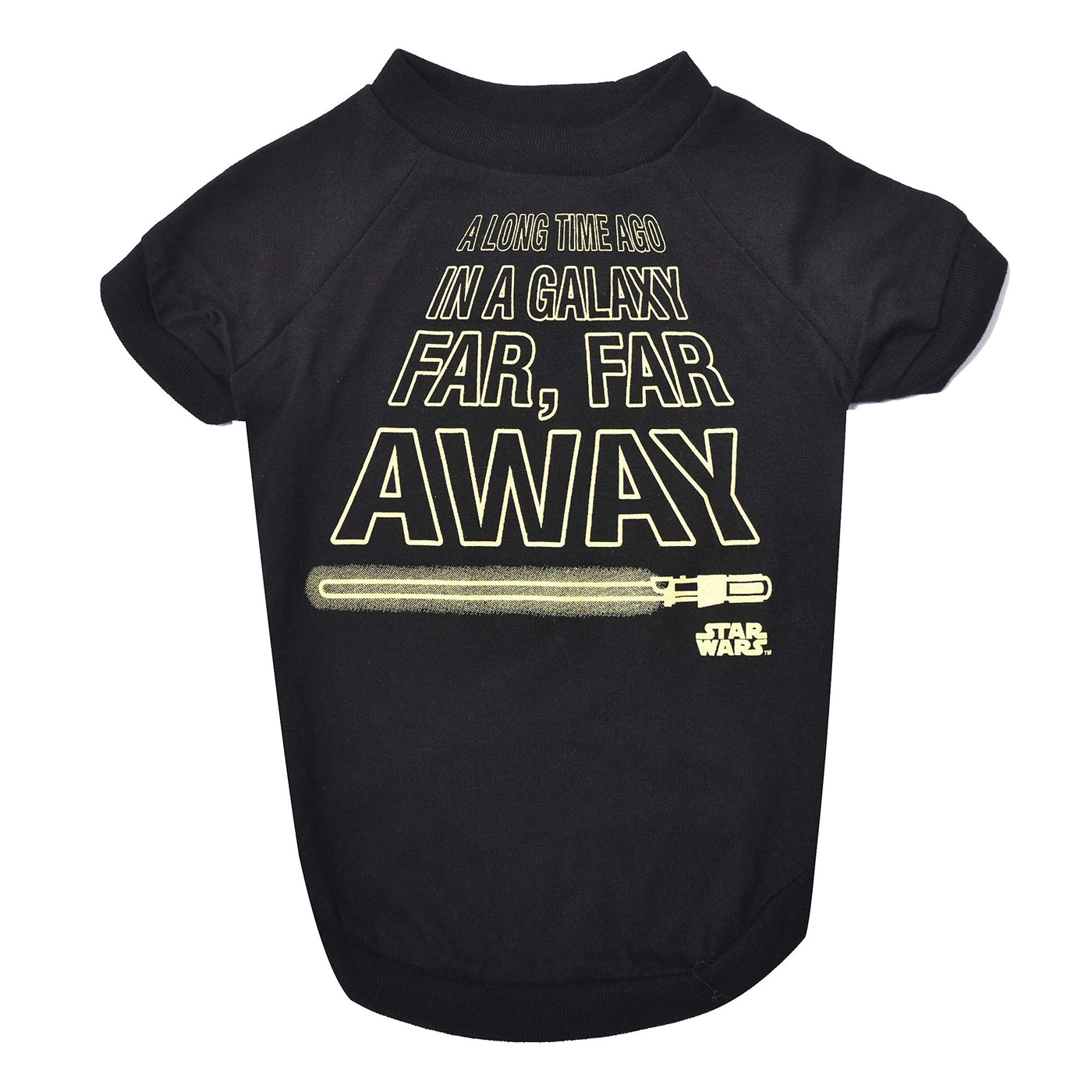 Star Wars Fans Can Get All The Latest Gear For Their Pets Leading Up To The Release Of Star Wars: The Rise Of Skywalker! Whether Dark Side Or Light Side, There Is Something For Everyone In This Dog Tee Collection. These T-Shirt And Tank Designs Feature Fan Favorites Including Yoda, Boba Fett, Chewbacca, Leia, Darth Vader, And Stormtroopers. Thanks To These Edgy Dog Tees And Tanks, Fans Can Share Their Love For The Film Series With Their Pets. May The Force Be With You And Your Pup! This Star Wars Galaxy Far, Far Away Dog Tee Is Made Of A Super Soft Cotton/Poly Blend, Keeping Your Canine Comfortable And Ready For Adventures In The Galaxy. This Black And Yellow Dog Shirt Features The Famous Intro Crawl And A Yellow Lightsaber. Dog Apparel Comes In Sizes X-Small, Small, Medium, Large, X-Large, And Xx-Large. Be Sure To Measure Your Pet, And Select His Or Her Size Carefully, Referring To The Size Chart In The Image Section. Super-Fans Should Also Check Out Our Collection Of Soft And Squeaky Toys. Plush Figures Such As Yoda And Chewbacca Are Perfect For Cuddling Or Playing. These Fun And Adorable Toys Will Keep Your Pup Entertained. Care Instructions: Machine Wash In Cold Water. A Dog Tee Shirt Like This Shirt For Dogs From Star Wars Dog Is Just What Pet Parents And Pet Owners Want To Dress Their Pets In. Dogs That Wear A Cute Star Wars Dog Shirt Dog Shirt Star Wars Are Sure To Be The Star Of Any Party. Star Wars For Pets Products Are Just What Your Dog Needs For A Halloween Dog Costume Or For Everyday Wear. How To Wash Your Dog Tee Shirt And Care Instructions: Machine Wash In Cold Water.