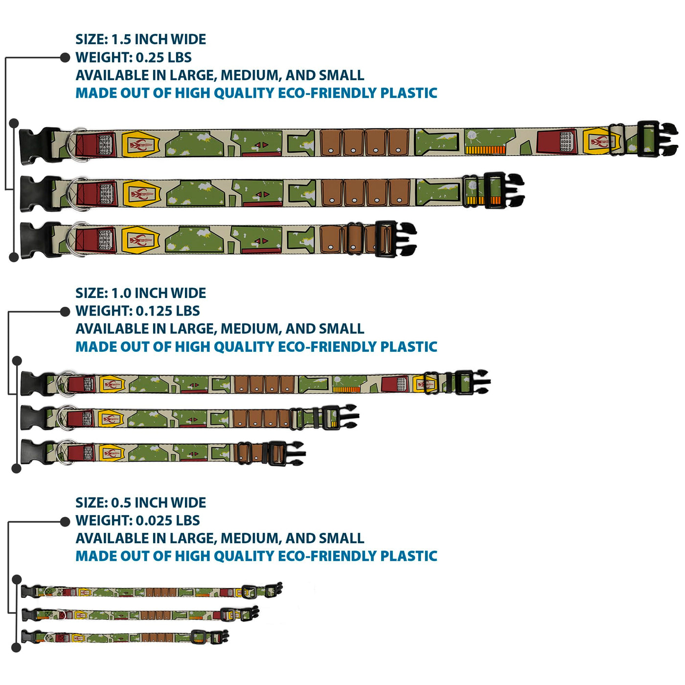 Star Wars Pet Collar, Dog Collar Plastic Buckle, Star Wars Boba Fett Utility Belt Bounding Tan, 7 To 8.5 Inches 0.5 Inch Wide