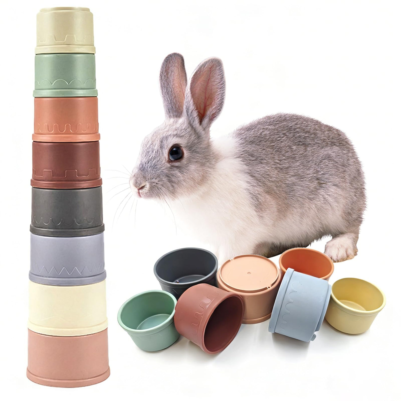 Starfa Lab 8 Pcs Stacking Cups For Small Animal Toys,Nesting Rabbit Toys Of Different Sizes,Safe Plastic Colorful Nesting Toys F