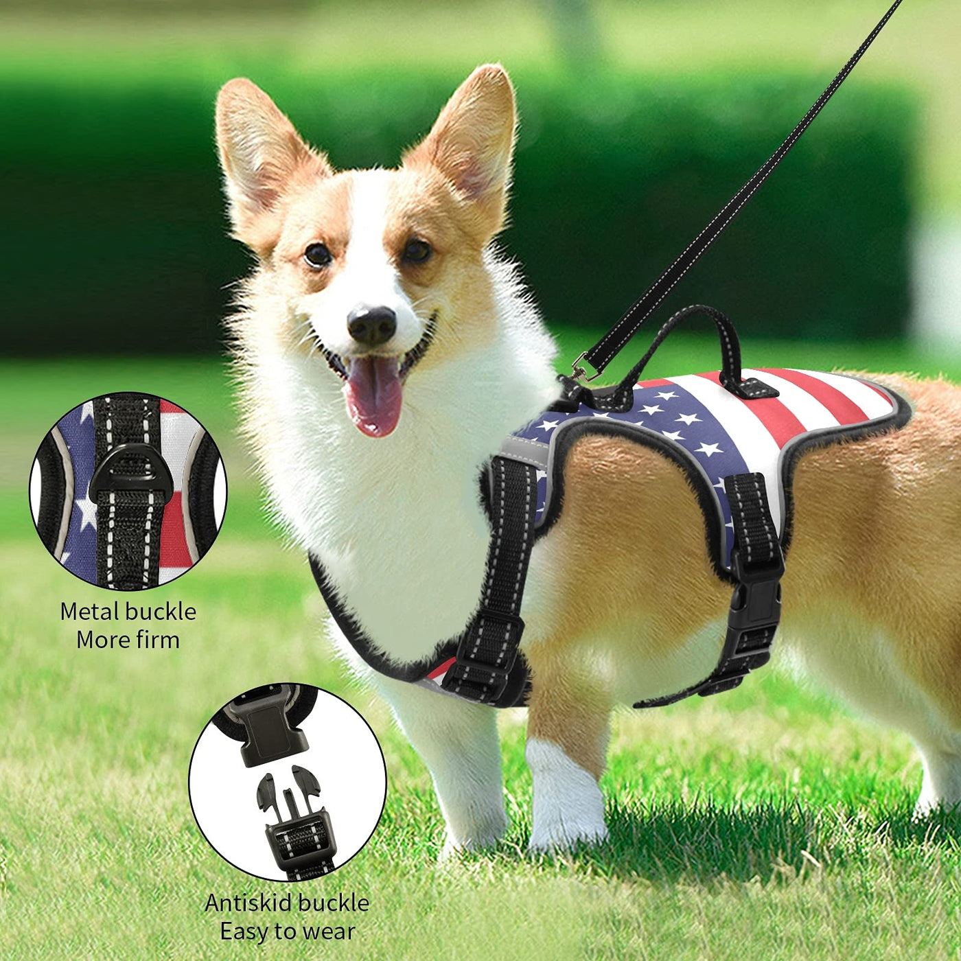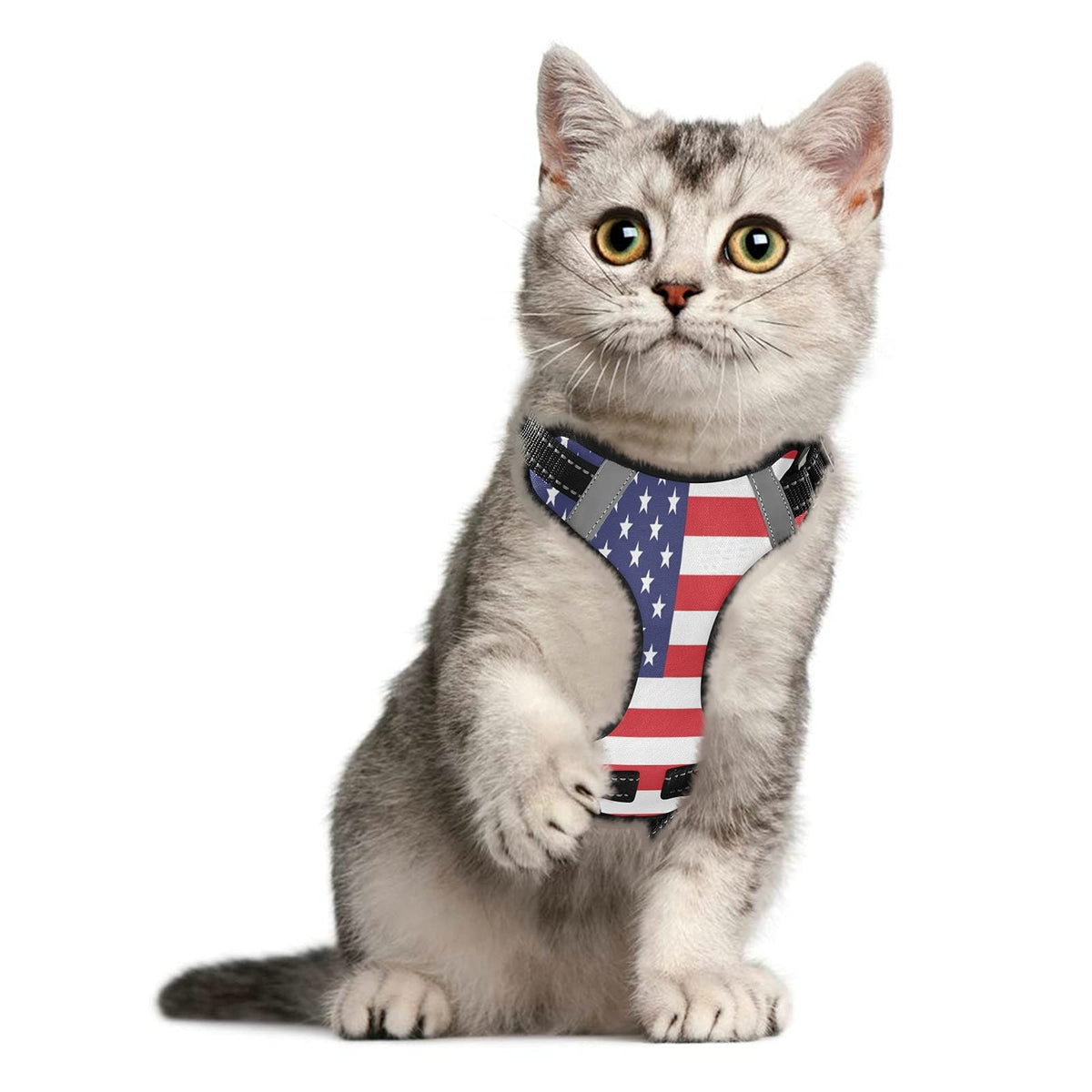 Staytop American Flag Dog/Cat Harness,Adjustable Soft Padded Pet Dog Vest-Reflective No-Choke Pet Harness Easy Control Front Cli