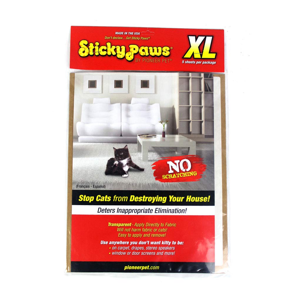 Help keep cat's off or out of unwanted larger areas with Sticky Paws transparent XL sticky tape designed with a tactile feel cats avoid. Sticky Paws also helps control inappropriate elimination. This tape is medical grade adhesive and safe for pets and most furniture. This product is easy to apply and remove.