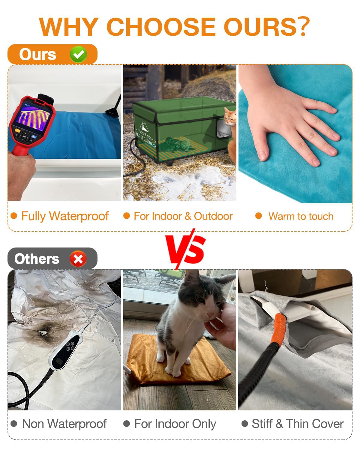 Stohot Outdoor Pet Heating Pad For Dog & Cat, Extremely Waterproof Heated Cat Bed Mat With 5 Timers & 6 Temp Adjustable, Heater