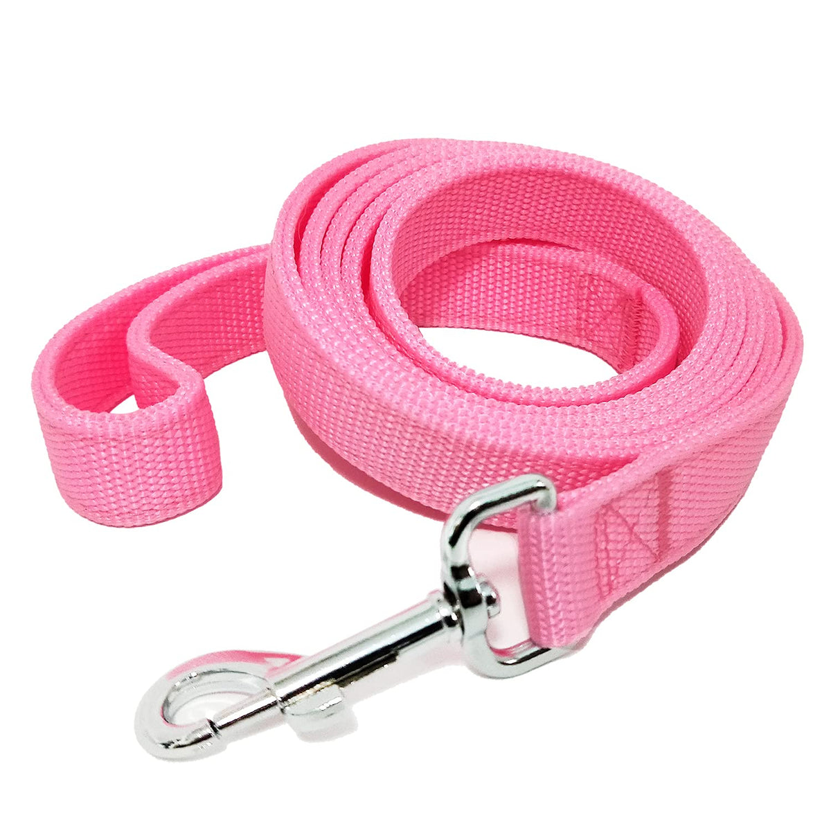 Strong Nylon Dog Leash With 2-Layer, 4 Ft/ 6 Feet Long, 1 Inch Wide For Medium Large Dogs (1'' X 7 Ft, Pink)