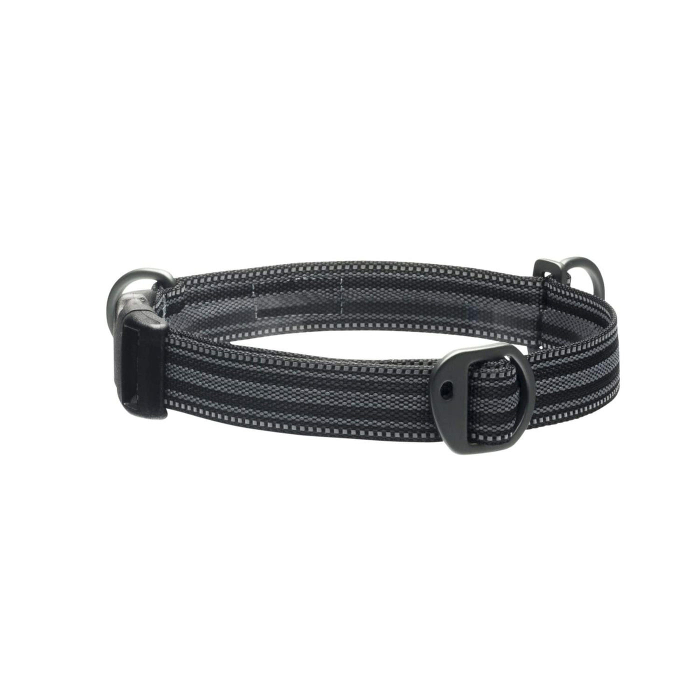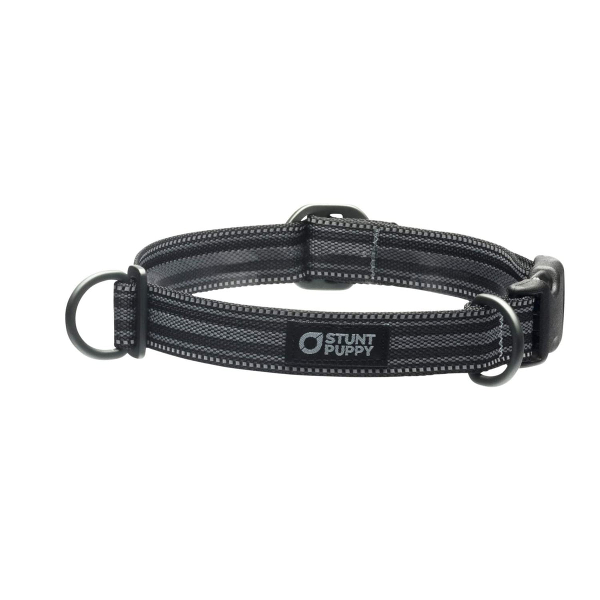 When it comes to an everyday collar, you want soft, smooth and comfortable. The Stunt Puppy Go Dog Glo Everyday Dog Collar is all that and more. Made with smooth nylon webbing, it won't pinch the skin or mat the hair. Finished with best-in-class Duraflex buckles and D-rings for security and peace of mind. Smart features include a separate D-Ring just for tags to minimize jingling, a variable position metal D-ring for easy access to leash clip and custom segmented reflective trim made with 3M Scotch lite Reflective Material, which provides 200 candle power and reflects directly back to the light source, up to 500 feet, in clear low-light or nighttime conditions. Not intended for tie-out. One size fits most; adjusts from 14 Inch to 21 Inch.