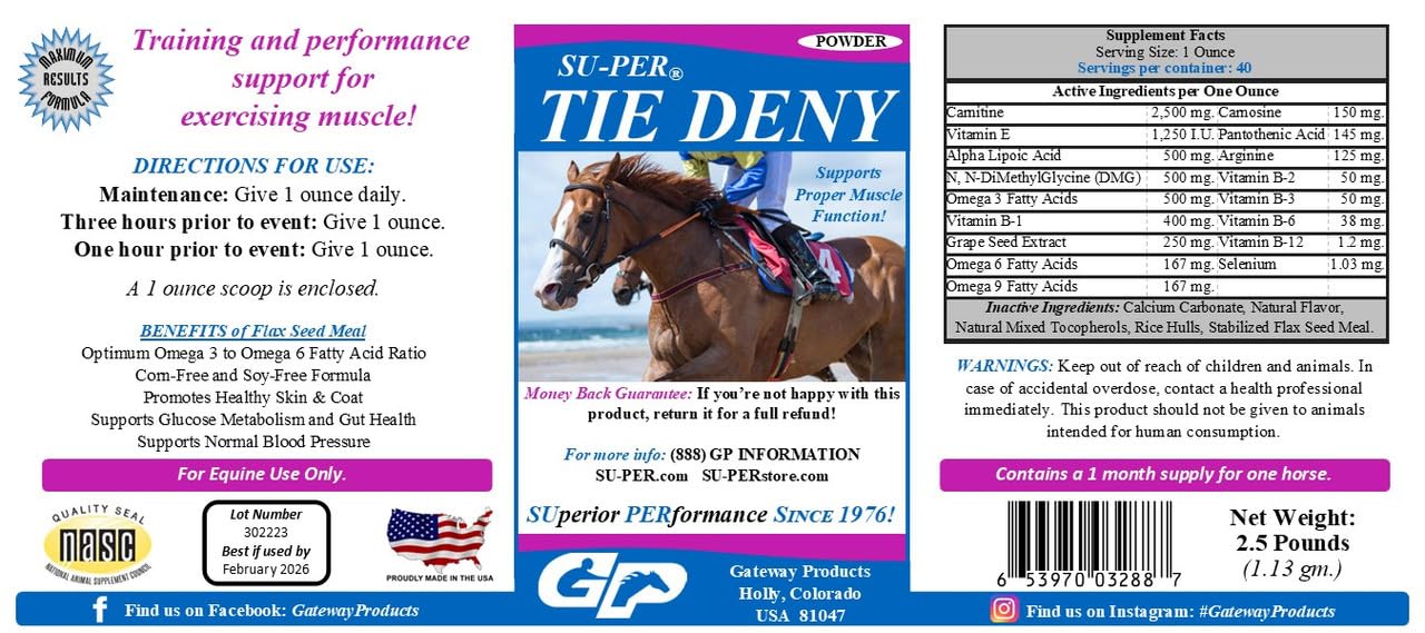 SU-PER Tie Deny Energy Horse Supplement - Supports Proper Muscle Function in Performance Horses - Normal Circulation & Oxygen Up
