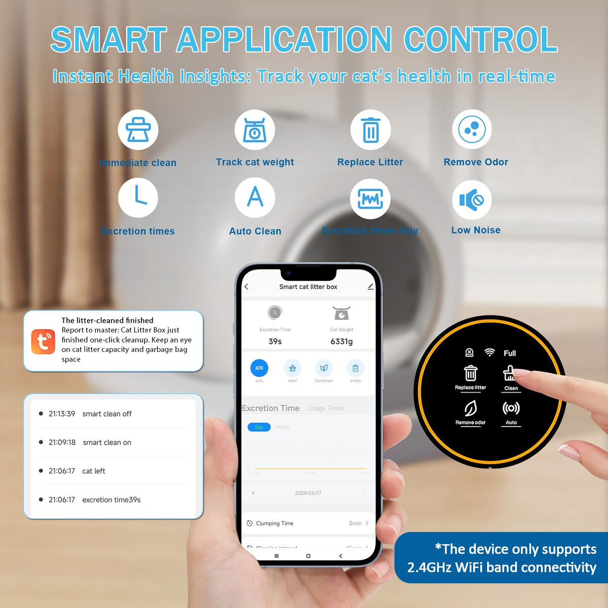 ?Safe Automatic Cleaning? Our Rotary Screening System Has Double Emergency Stop Sensors And Smooth Edge Components, Which Exceeds The Standard Drawer Design. There Is No Risk To Cats, So Make Sure That Any Cat Has No Pressure To Use It. ?Ergonomics Space Engineering? 18''X18'' Interior Space With 63 Liters Of Toilet Area (Accommodating 8-20 Pounds Of Cats) And 9.5 Liters Of Garbage Storage Area. The Low-Level Entrance Can Adapt To Different Kinds Of Cats. ?Behavioral Health Insight? Proprietary Smarttrack 2.0 Technology Combines Weight Sensing With Toilet Time, And Generates Toilet Records By Detecting The Toilet Time Of Cats With Different Weights. ?Customized Cleaning Solutions? Three Operation Modes: 1. Automatic Cleaning Immediately 2. Regular Cleaning 3. Manual Cleaning ?Ecological Deodoriztion System? This Litter Box Can Blow Out Air With Negative Ions For Deodorization, And Keep Your Indoor Room Fresh.