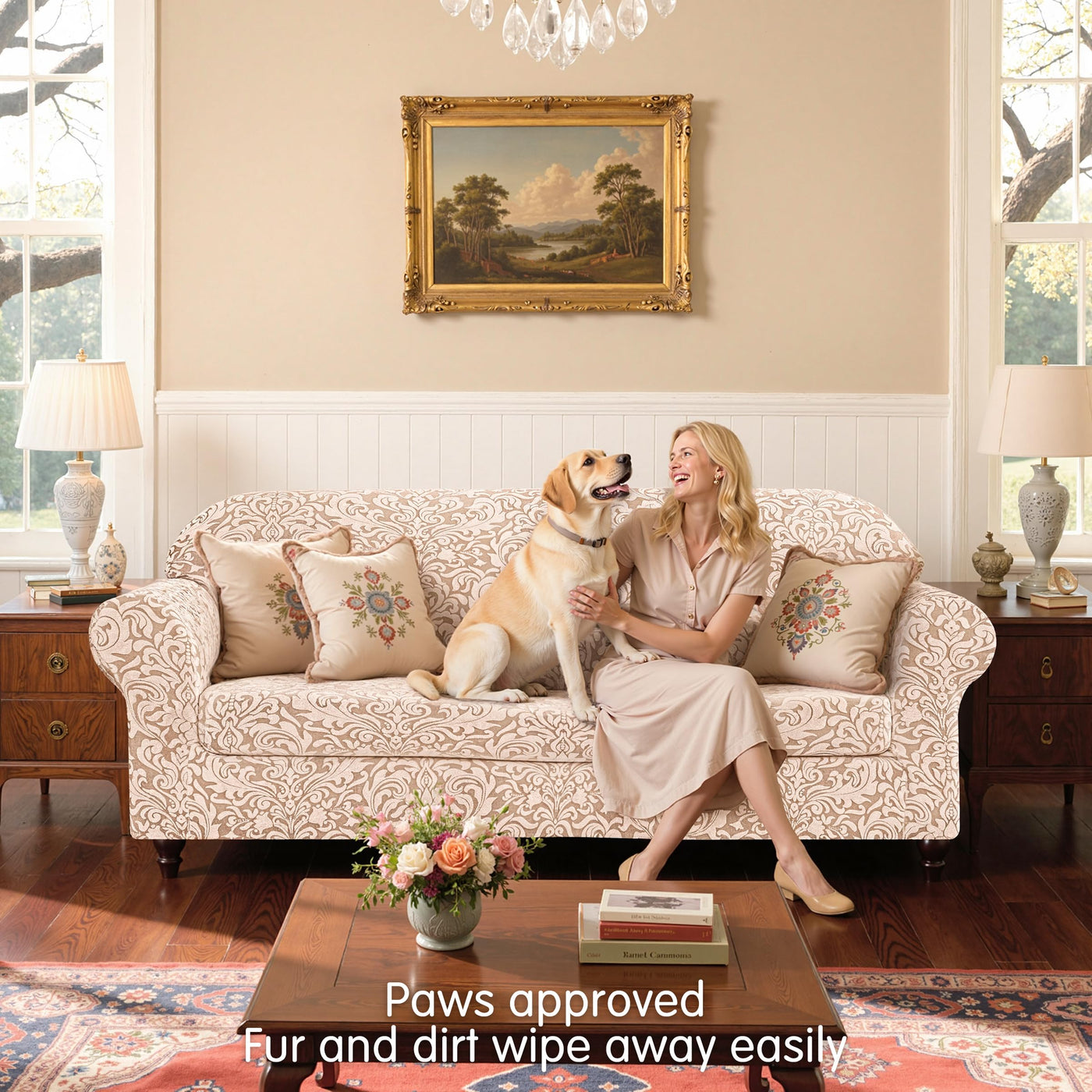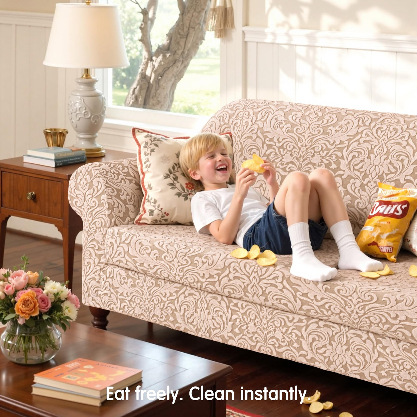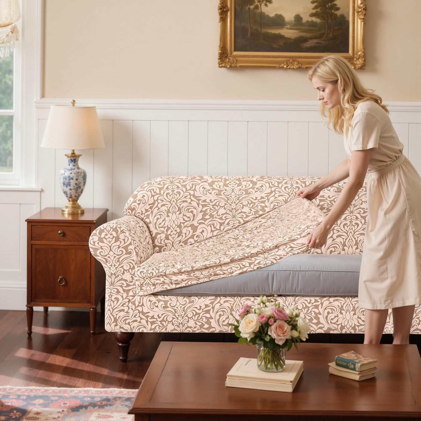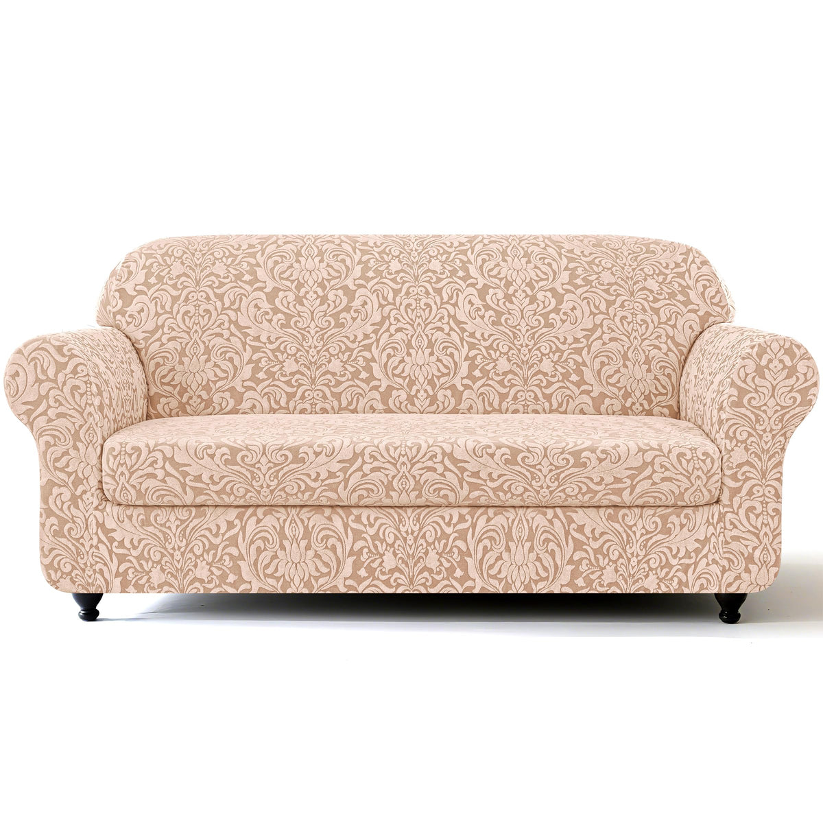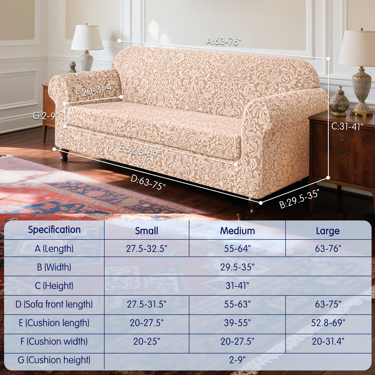 SUBRTEX 2 Piece Couch Covers, Jacquard Damask 3 Seater Sofa Cover with Seat Cushion, Stretch Sofa Slipcovers Non Slip Furniture