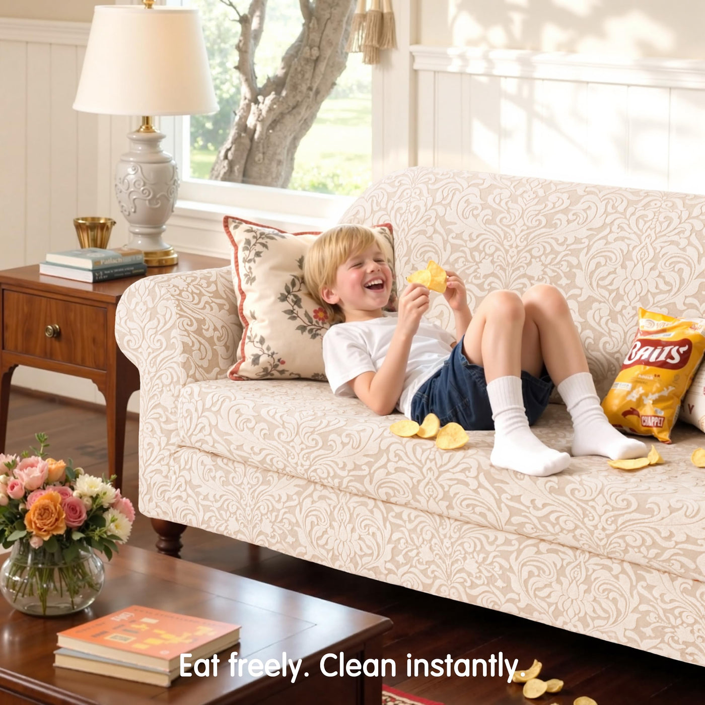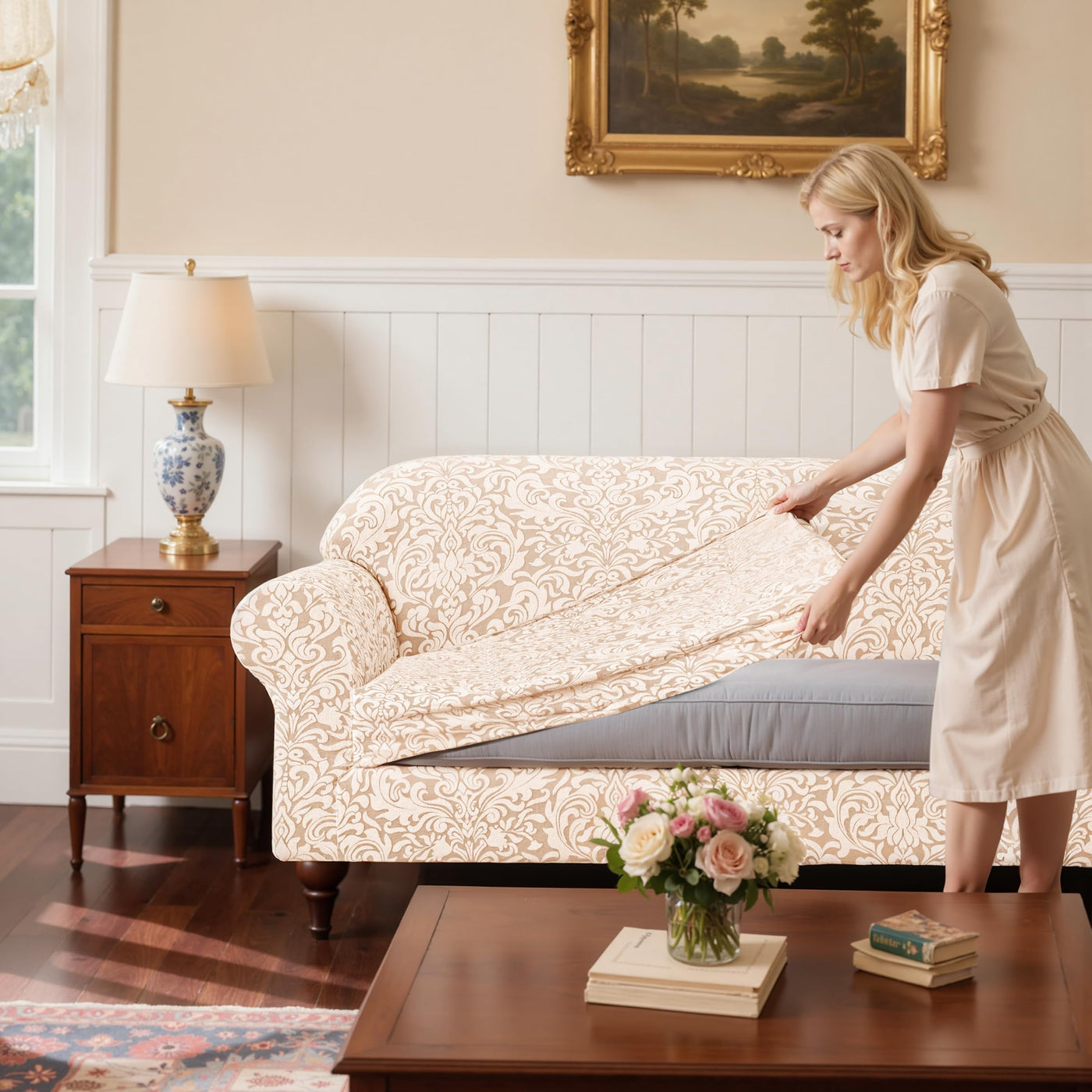 SUBRTEX 2 Piece Loveseat Covers, Jacquard Damask 2 Seater Couch Cover with Seat Cushion, Stretch Non Slip Furniture Protector fo